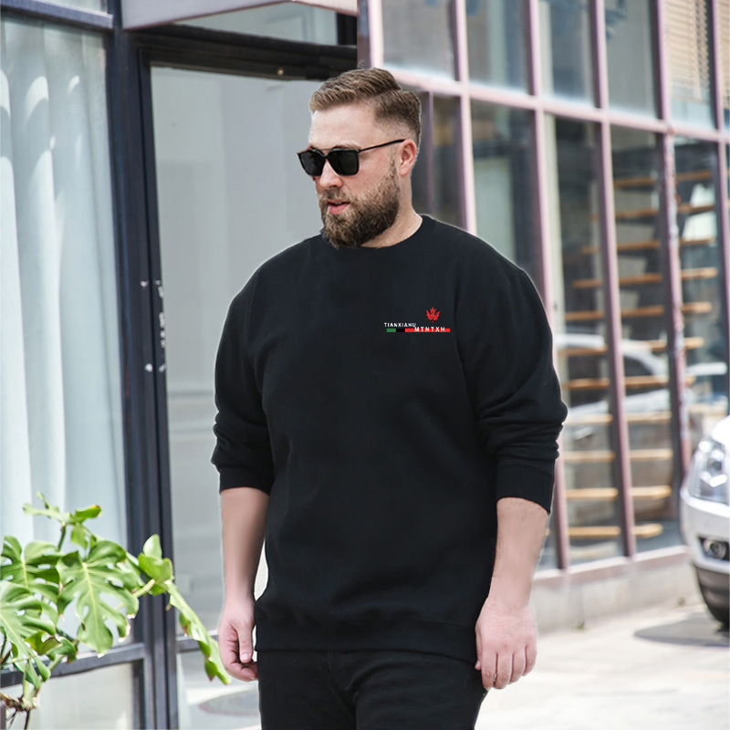 圆领卫衣男士2024春秋季美式重磅长袖T恤宽松大码打底衫加肥加大