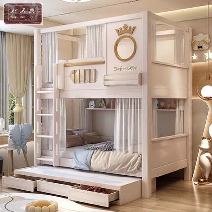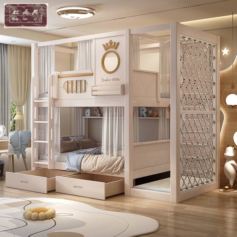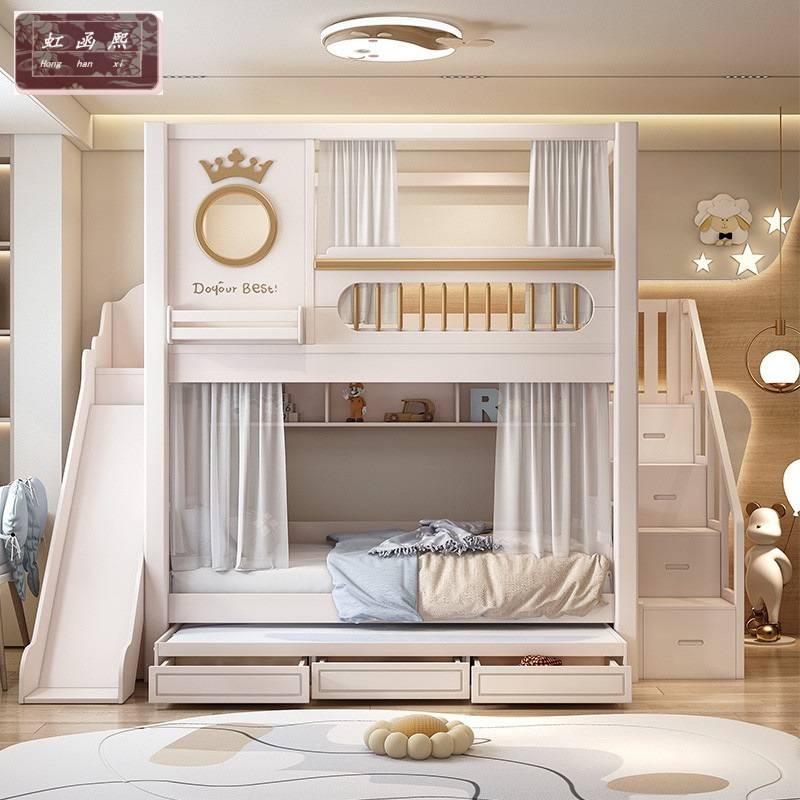 多功能高低床带滑梯全实木儿童上下床互不打扰上下铺双层床子母床