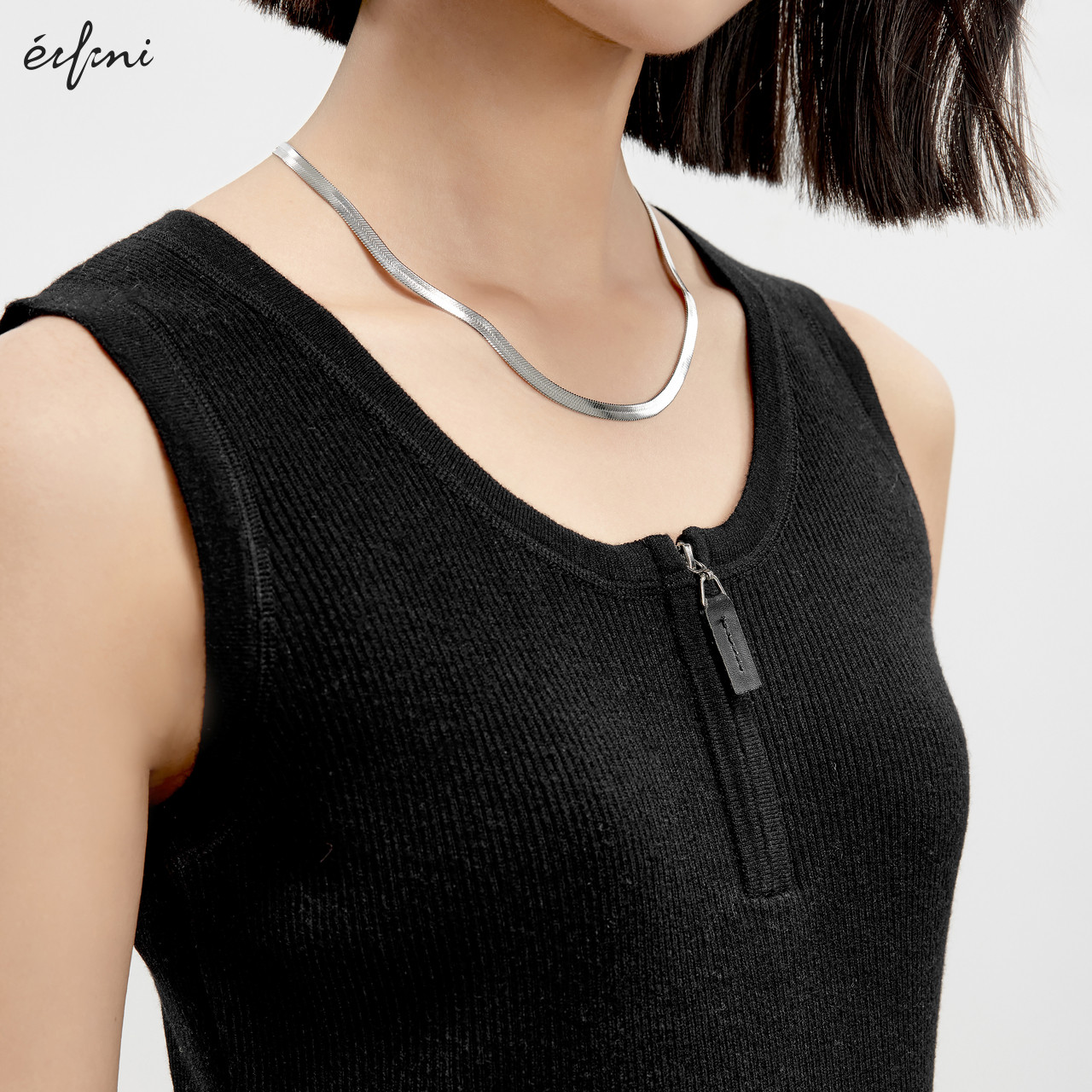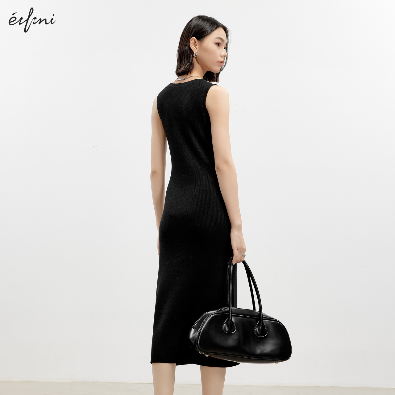 伊芙丽outlets店绵羊毛混纺黑色针织背心连衣裙修身舒适中长裙女