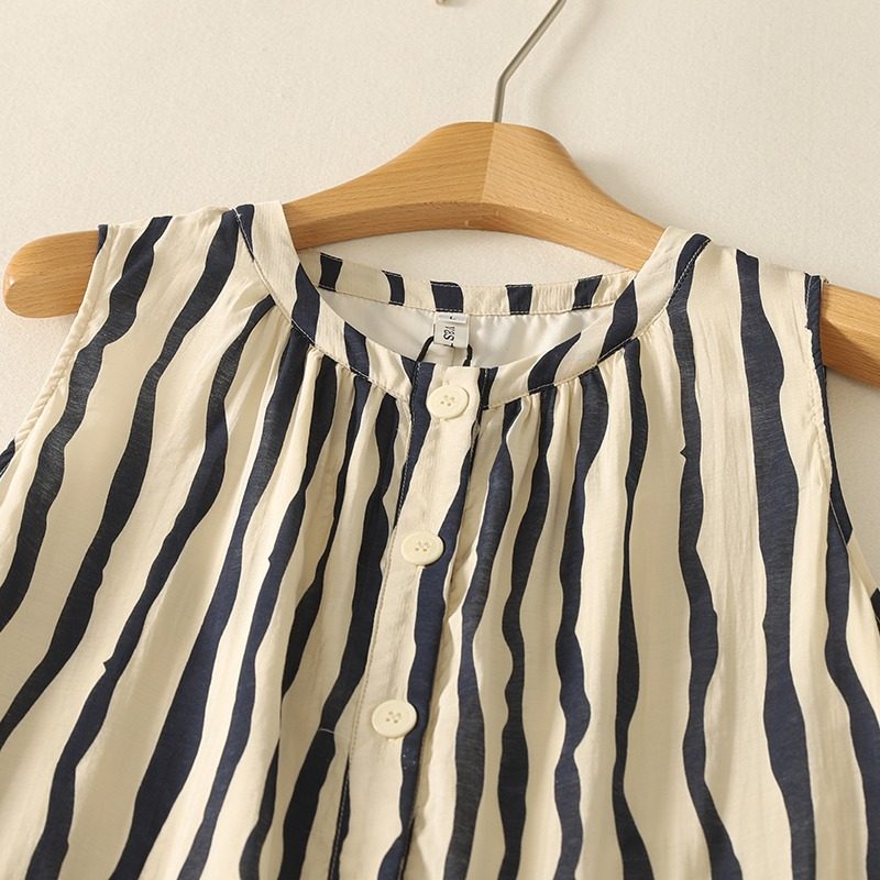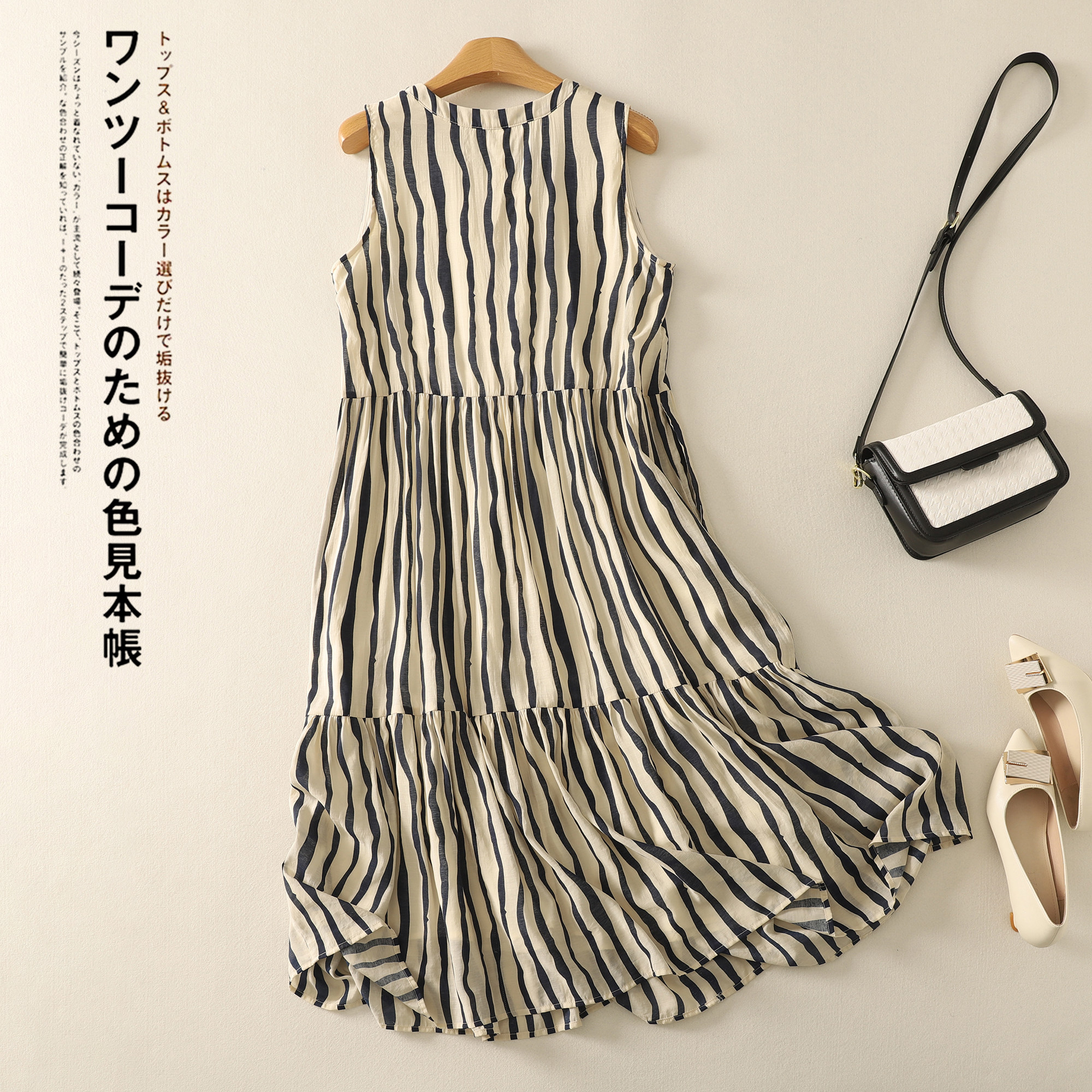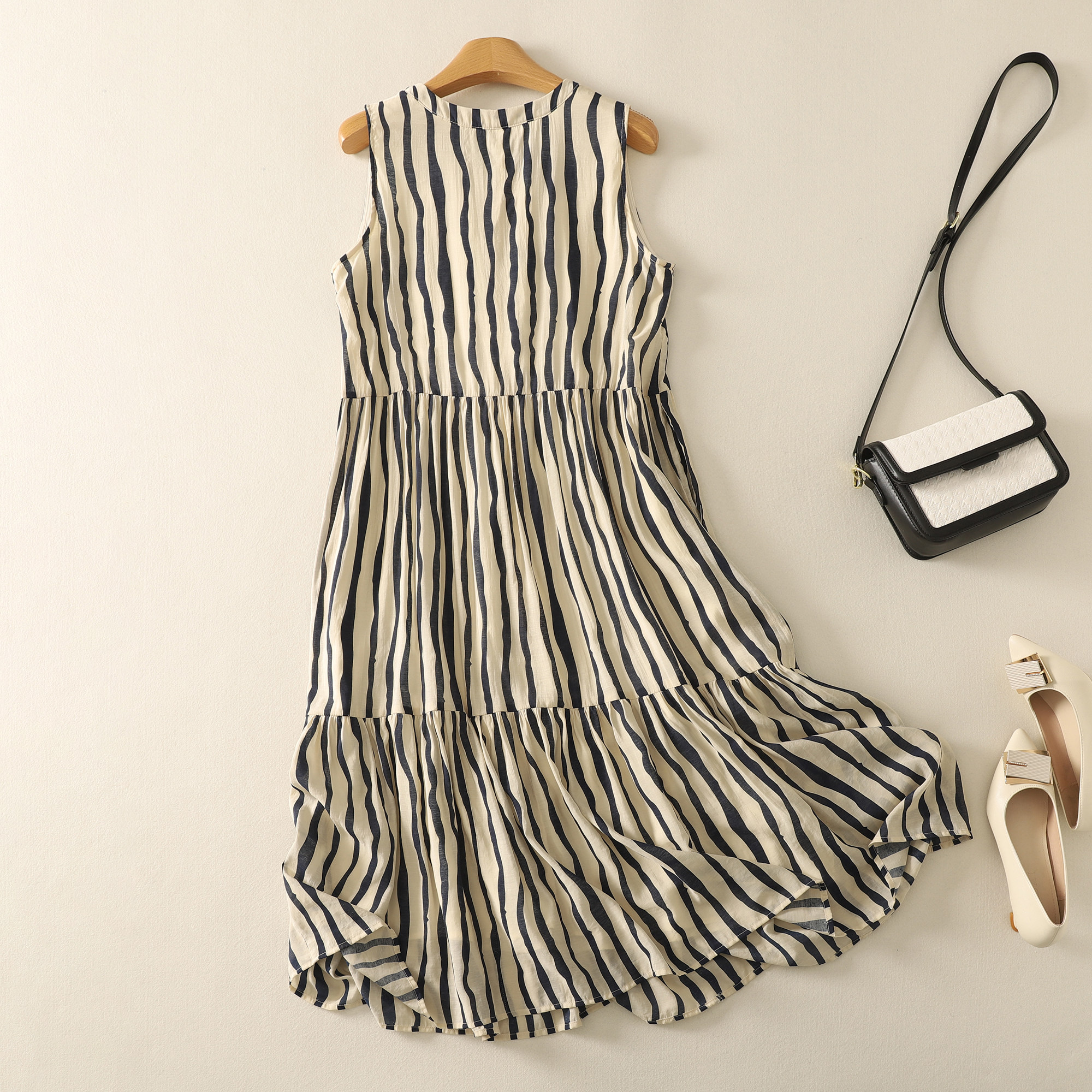 松弛感背心连衣裙女夏季 新款圆领宽松条纹a字裙度假风中长裙条纹