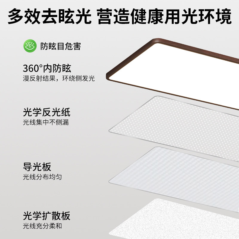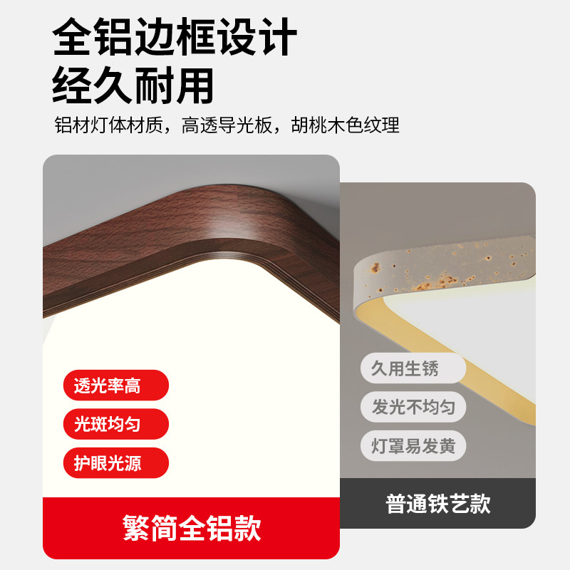 繁简中古风胡桃木客厅灯长方形简约奶油复古超薄无缝隙护眼吸顶灯