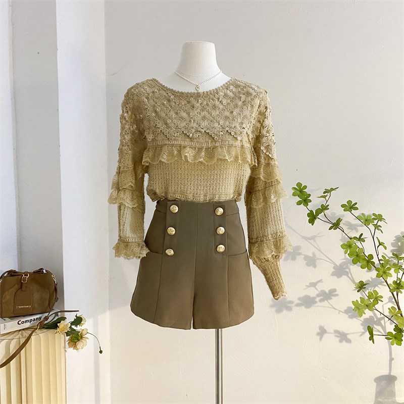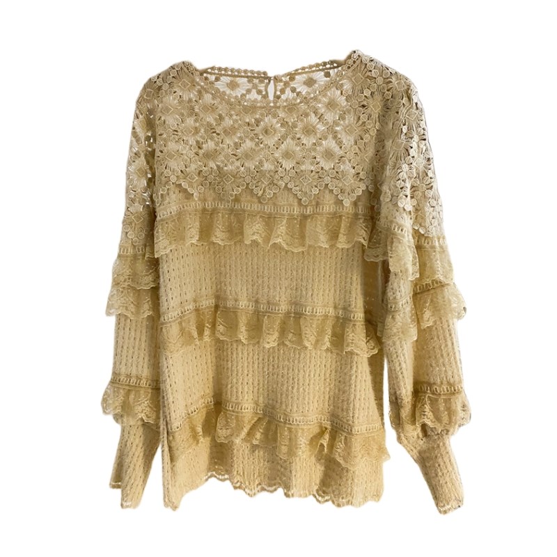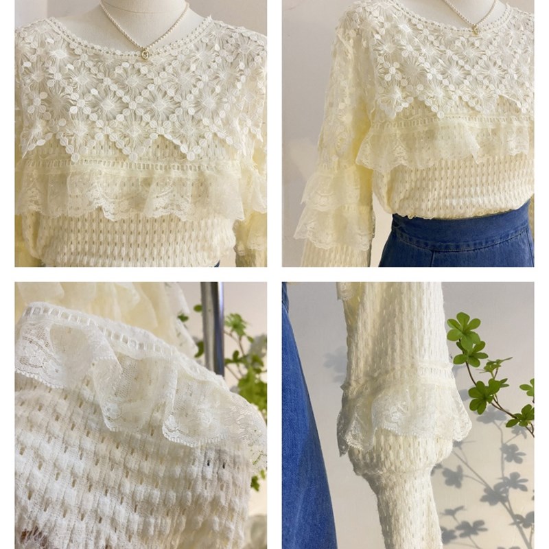温柔风蕾丝衫2025春新款钩花镂空圆领衬衫女设计感灯笼袖小衫上衣