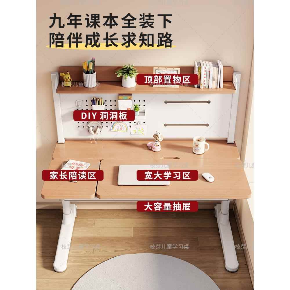 枝芽榉木儿童实木学习桌椅小学生书桌可升降写字桌课桌椅子套装