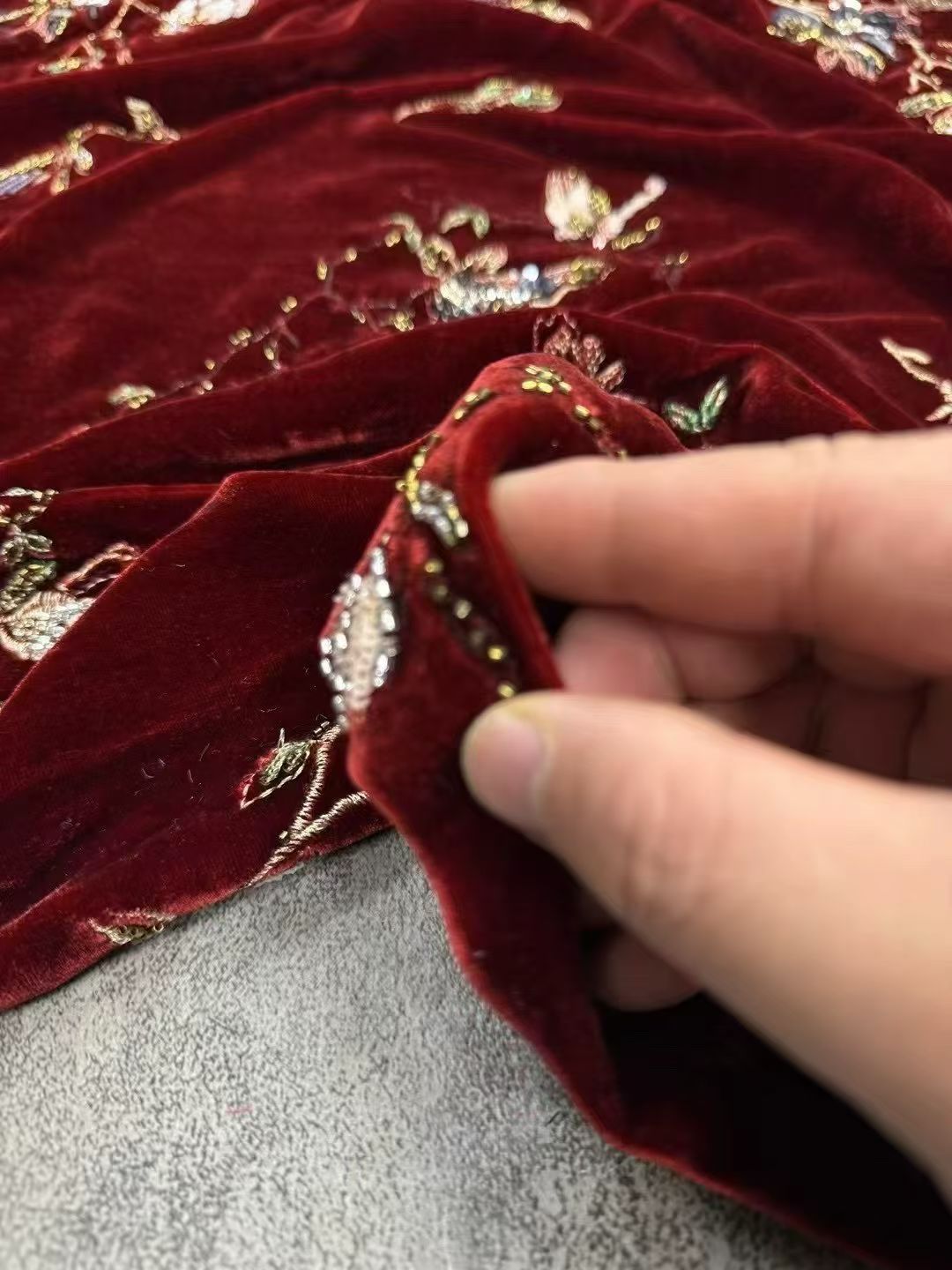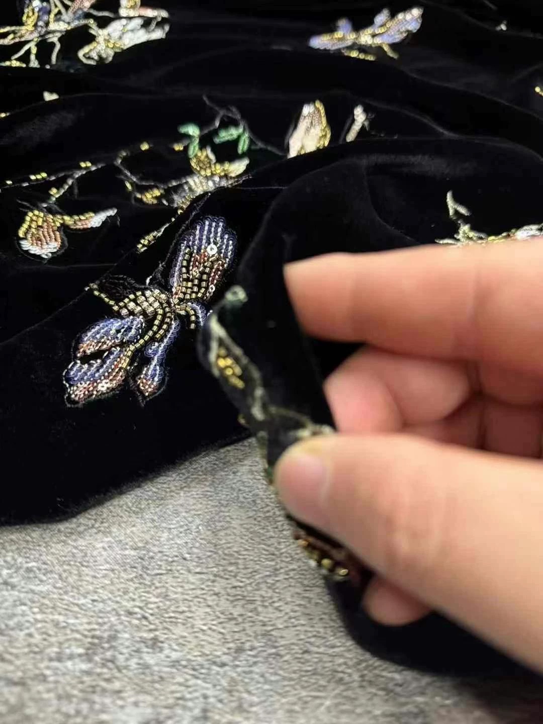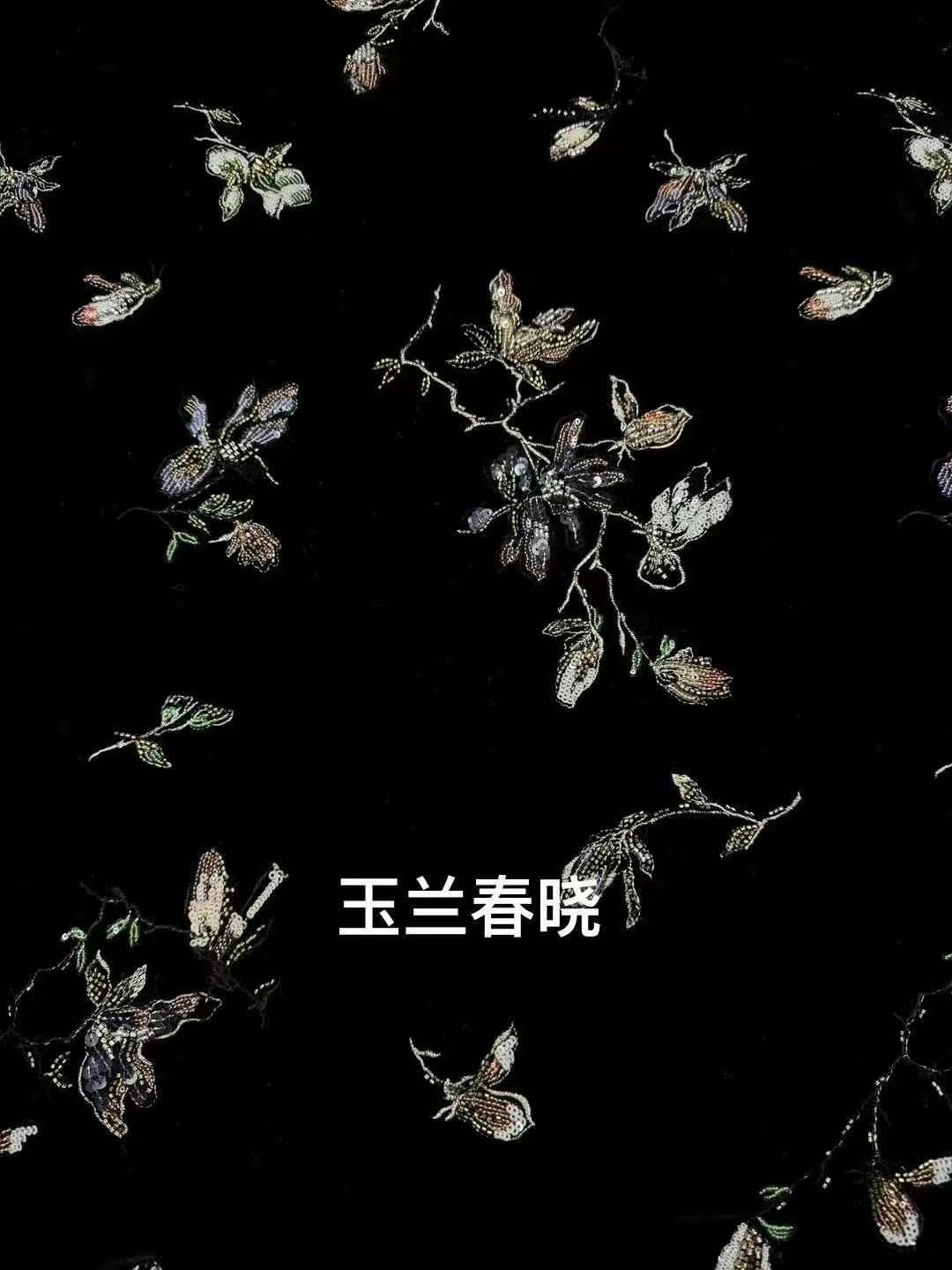 百分百桑蚕丝玉兰春晓真丝丝绒刺绣面料新中式上衣旗袍真丝布料