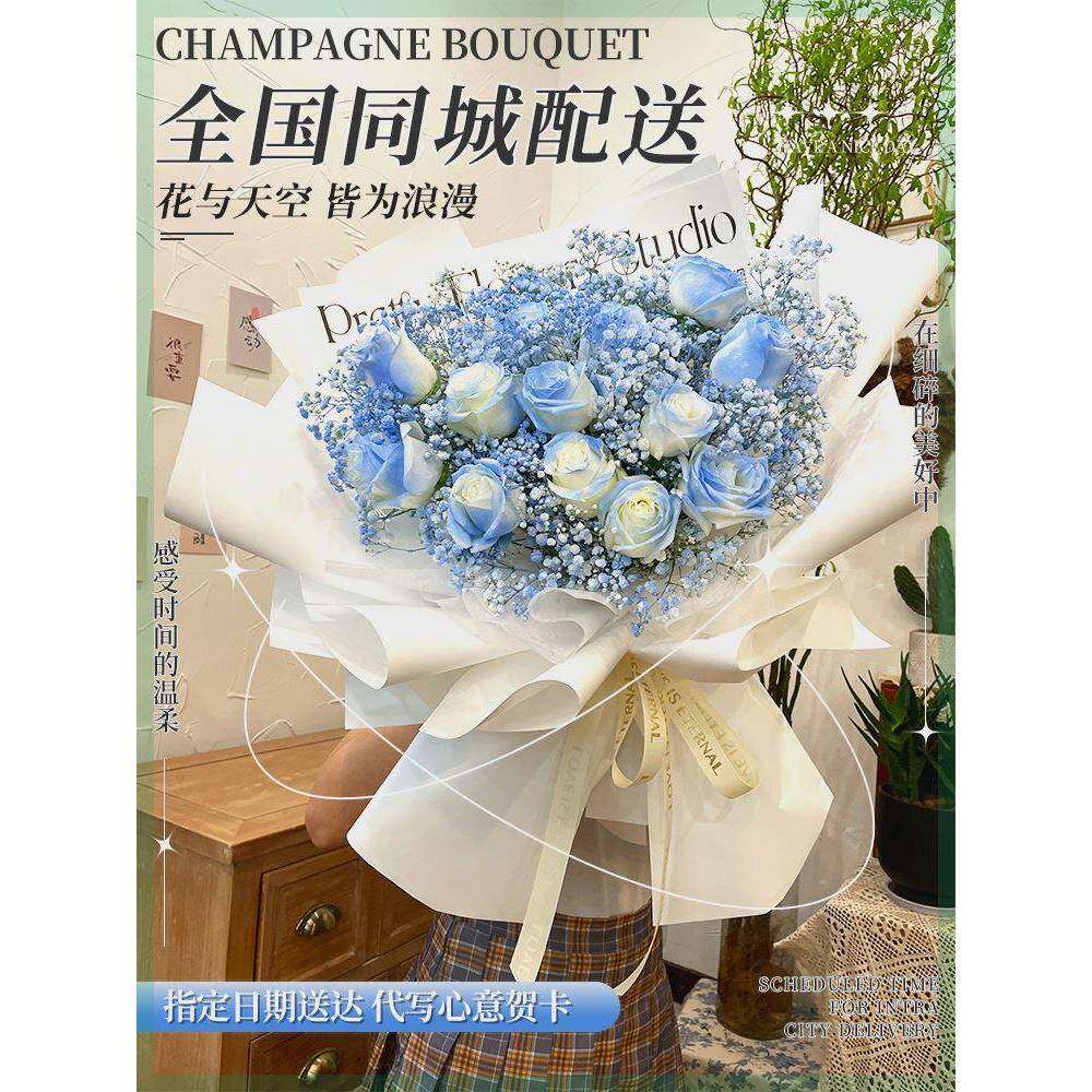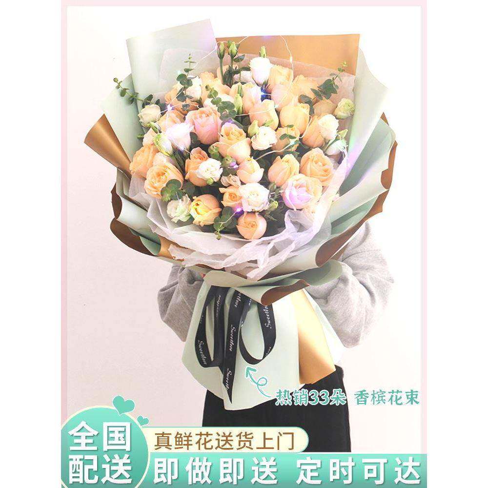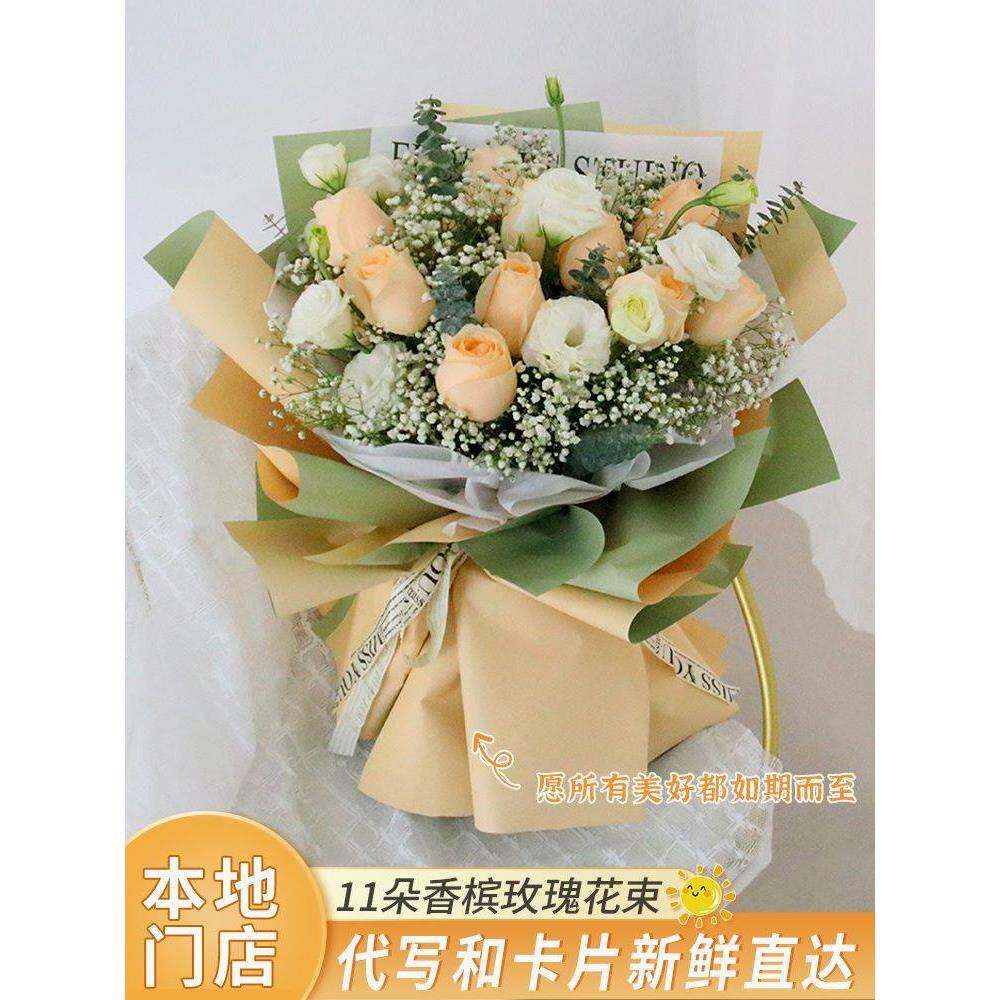 母亲节温州鲜花速递同城香槟红玫瑰花束礼盒乐清瑞安嘉兴台州生日