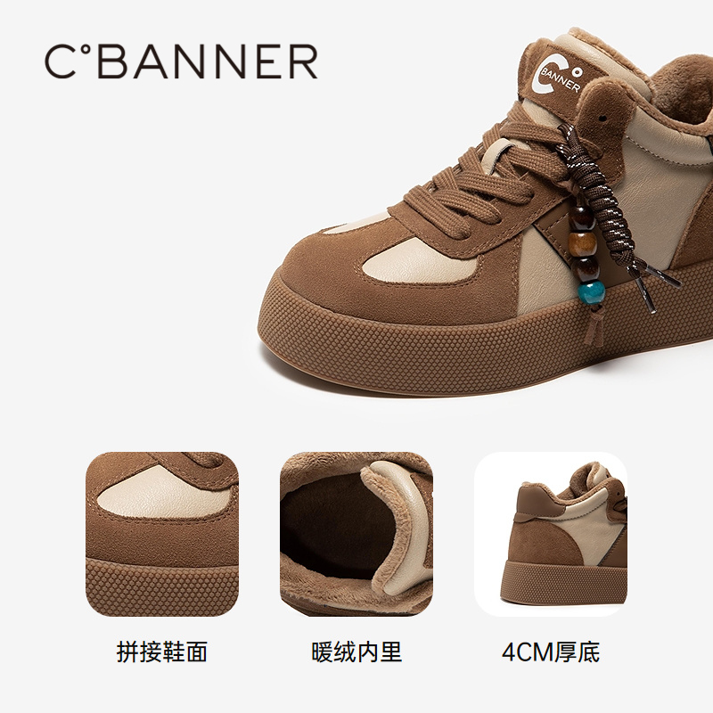 千百度美拉德德训鞋女2025冬季新款加绒饼干鞋保暖短靴运动休闲鞋