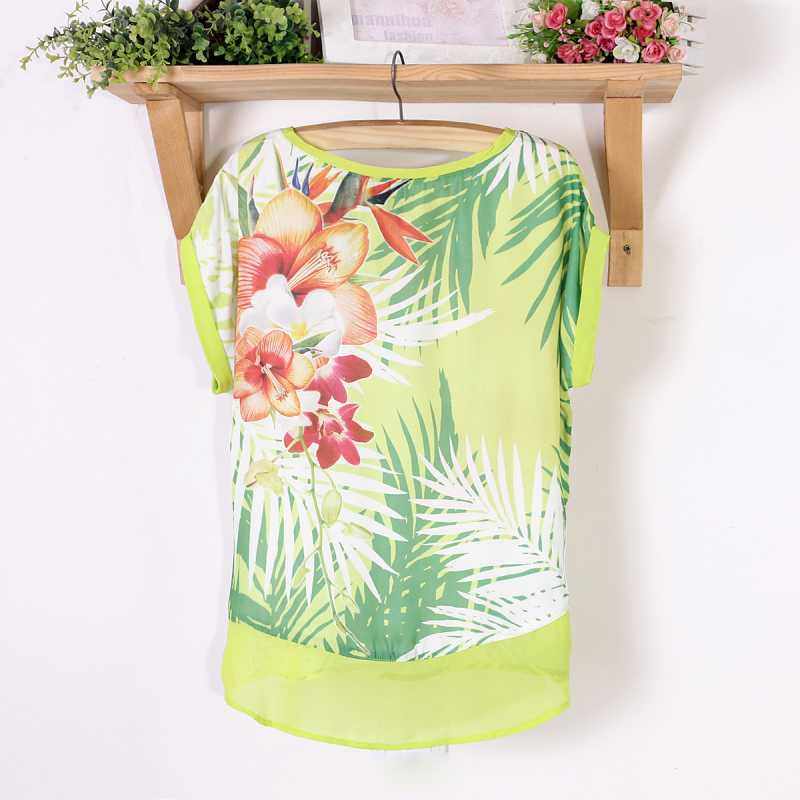 春夏装新款中老年女装镶钻印花打底雪纺衫短袖衫外贸原单大码