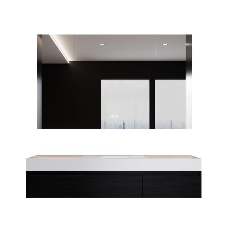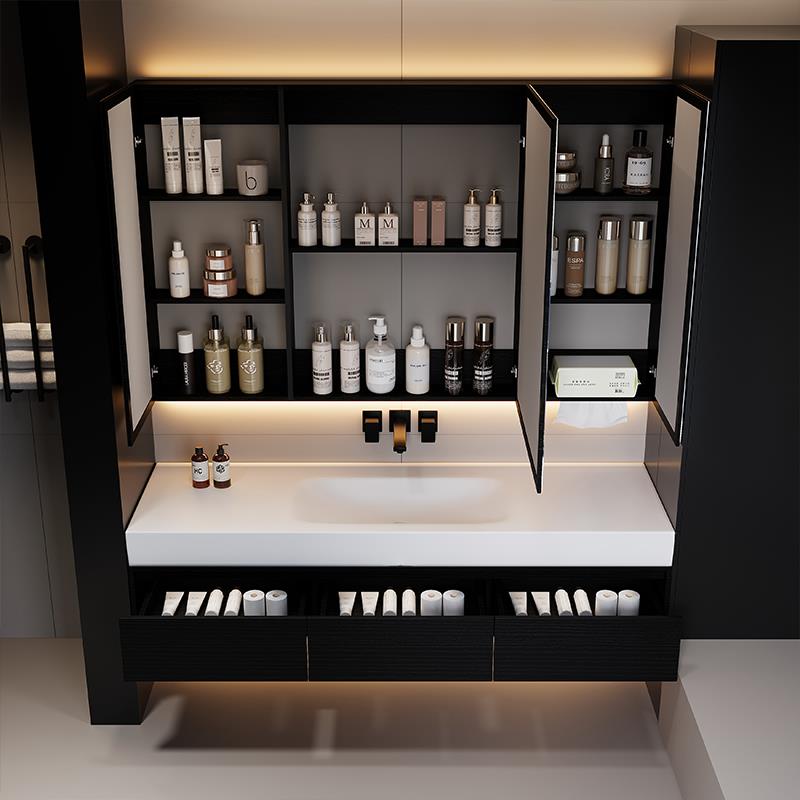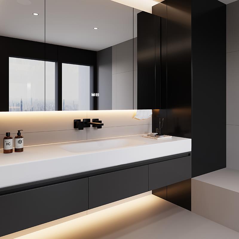 酒店风极简智能浴室柜组合岩板热弯一体盆卫生间洗手洗脸盆洗漱台