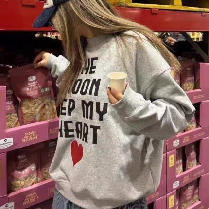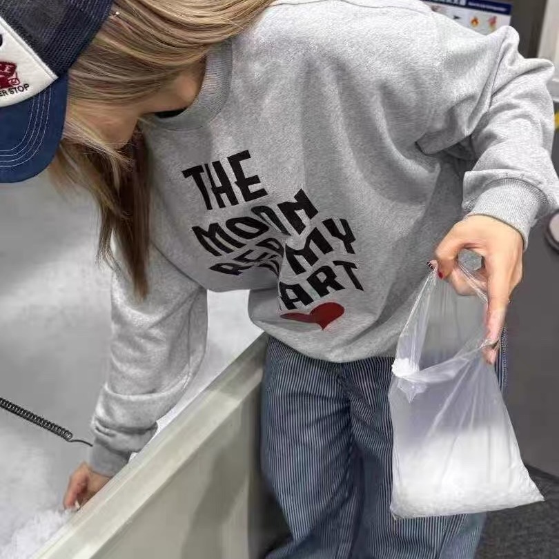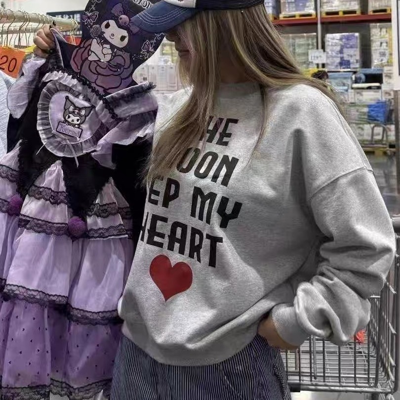 纯棉灰色小众圆领卫衣女宽松2025春秋薄款百搭显瘦加绒加厚上衣