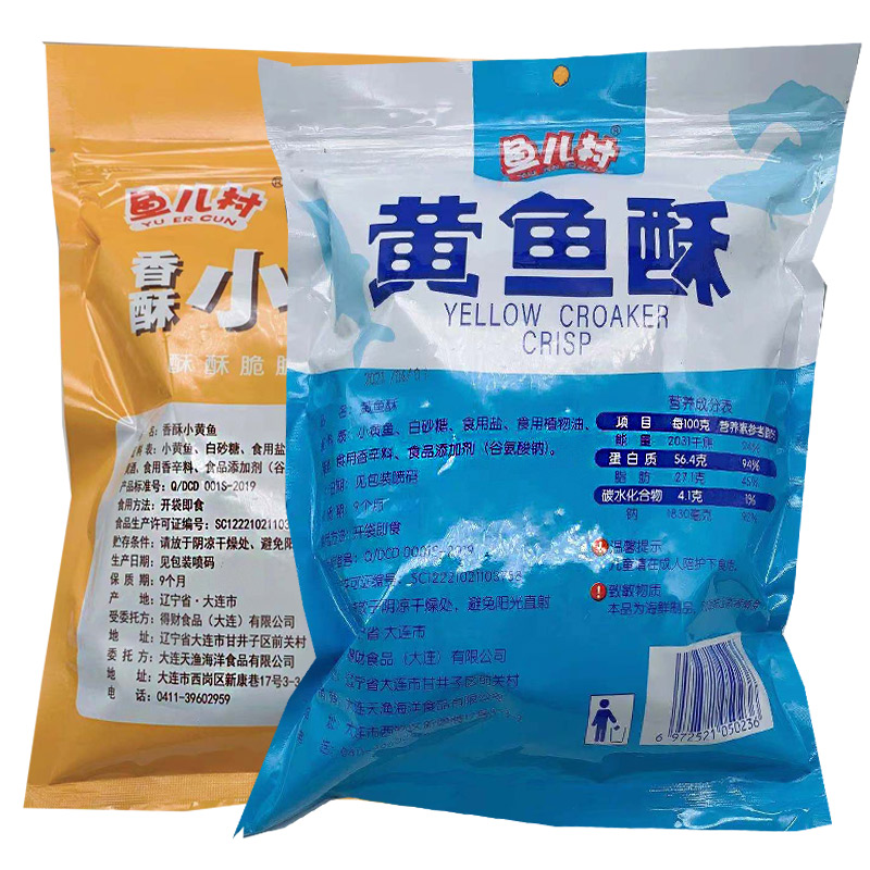 大连特产海鲜鱼儿村小黄鱼酥500g网红即食香烤带鱼酥海洋零食小吃
