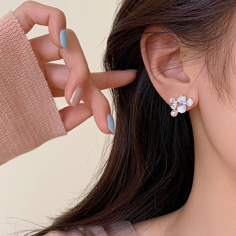 【巷南】999银花朵珍珠耳钉轻奢小众2025新爆款耳环女高级感耳饰