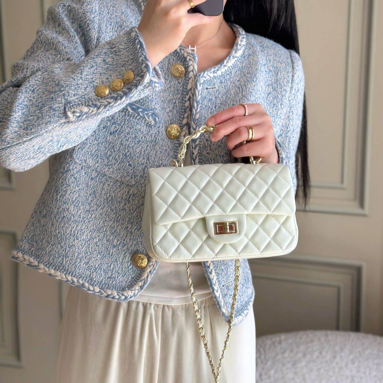 小香风真皮菱格链条包女手提包高级感2025新款百搭单肩斜挎小方包