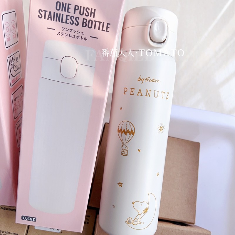 日本史努比新款周边简约风小清新卡通女生不锈钢保温杯480ml水杯