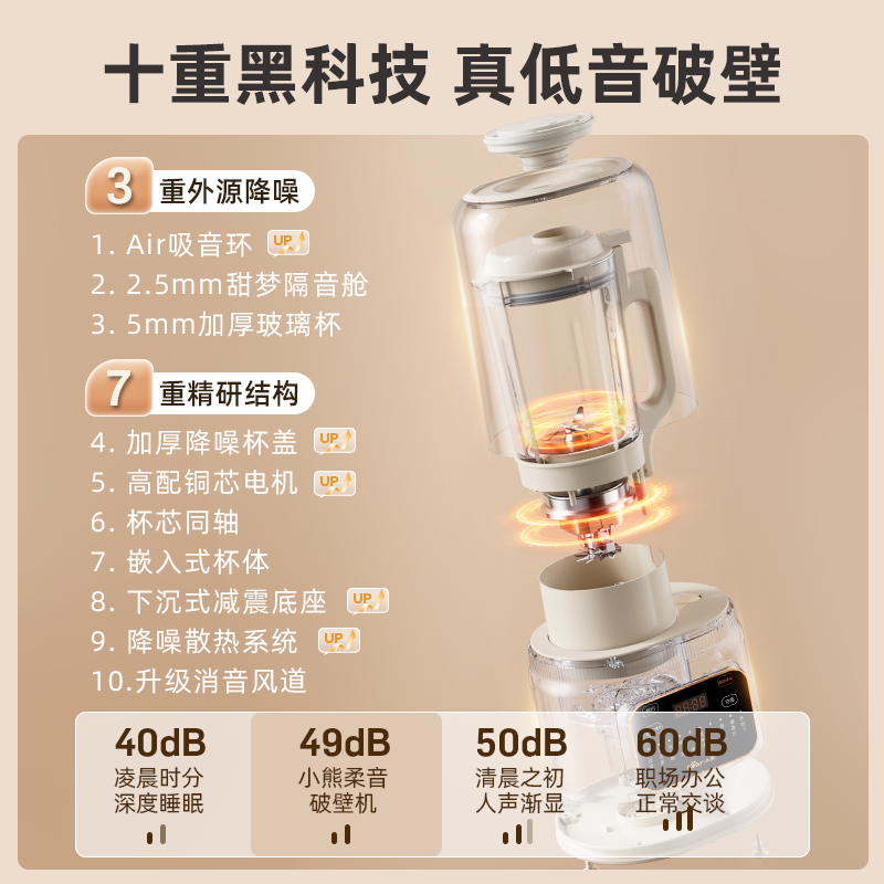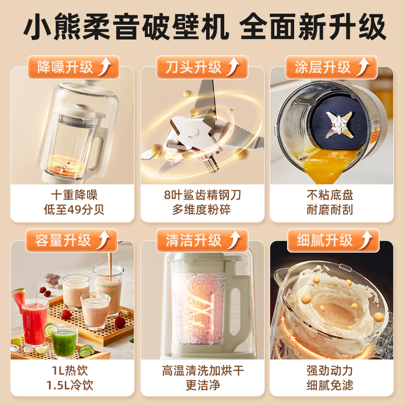小熊低音破壁机家用豆浆机全自动免煮小型料理机榨汁机一体米糊机
