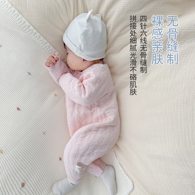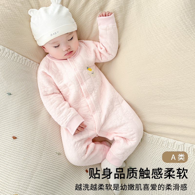 夹棉婴儿连体衣春秋季男女宝宝衣服纯棉保暖衣新生儿爬服哈衣外套