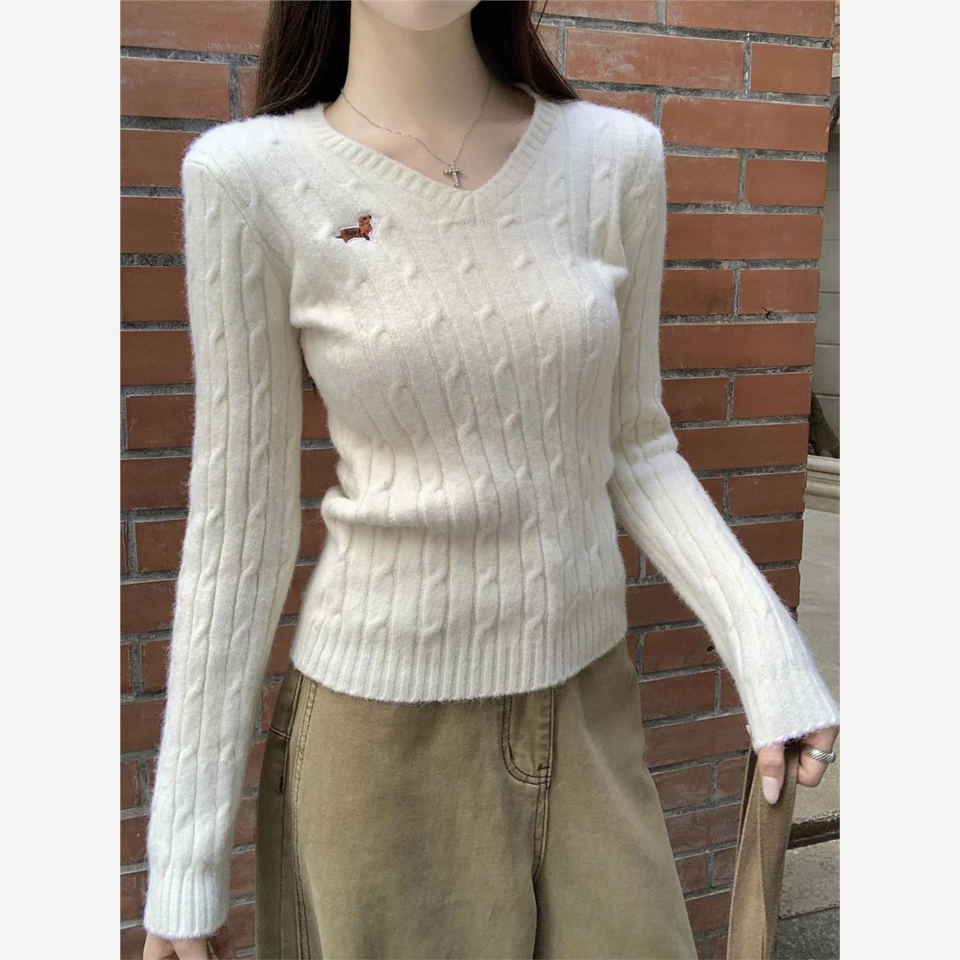 法式秋冬麻花V领打底衫女内搭洋气高级感毛衣修身长袖针织衫上衣