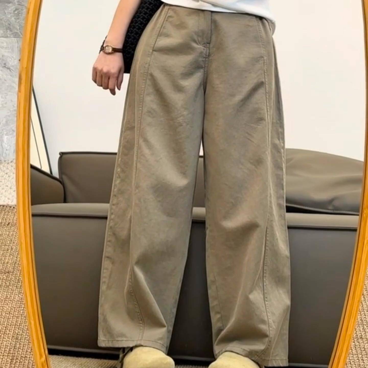 日系卡其色裤子女夏季薄款小个子工装裤宽松慵懒风休闲裤阔腿长裤