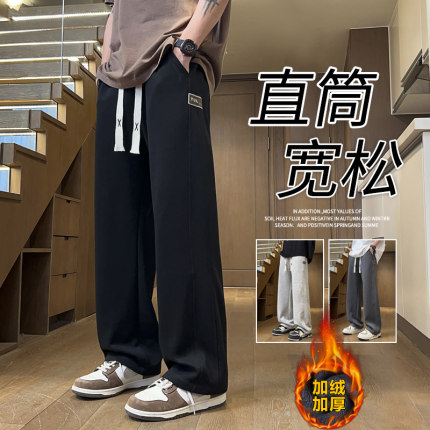 休闲裤男款春秋款加绒运动裤子青少年初高中生阔腿宽松直筒卫裤男