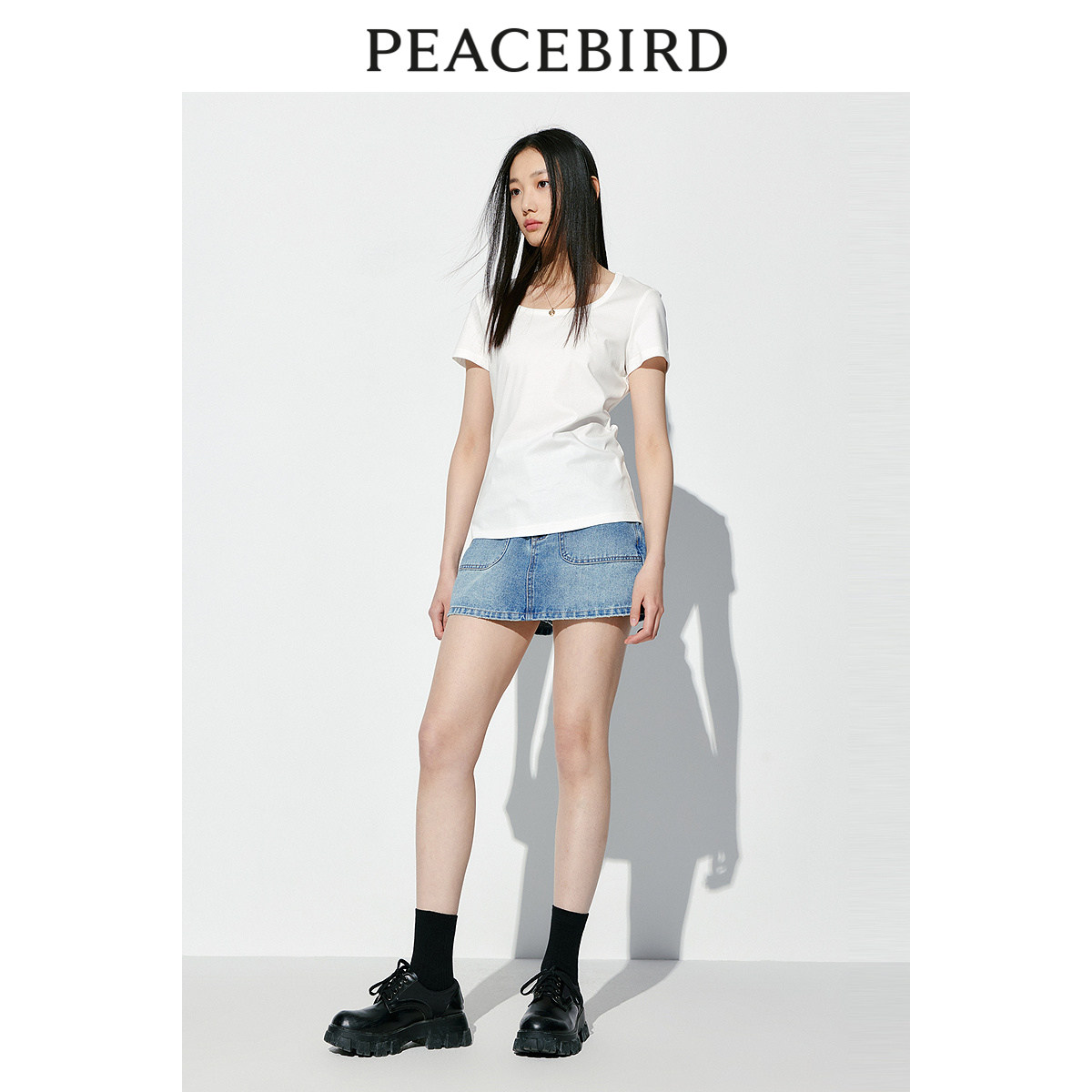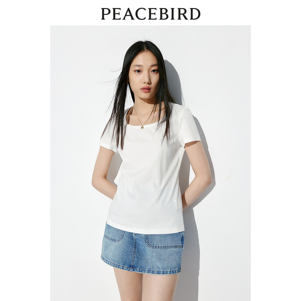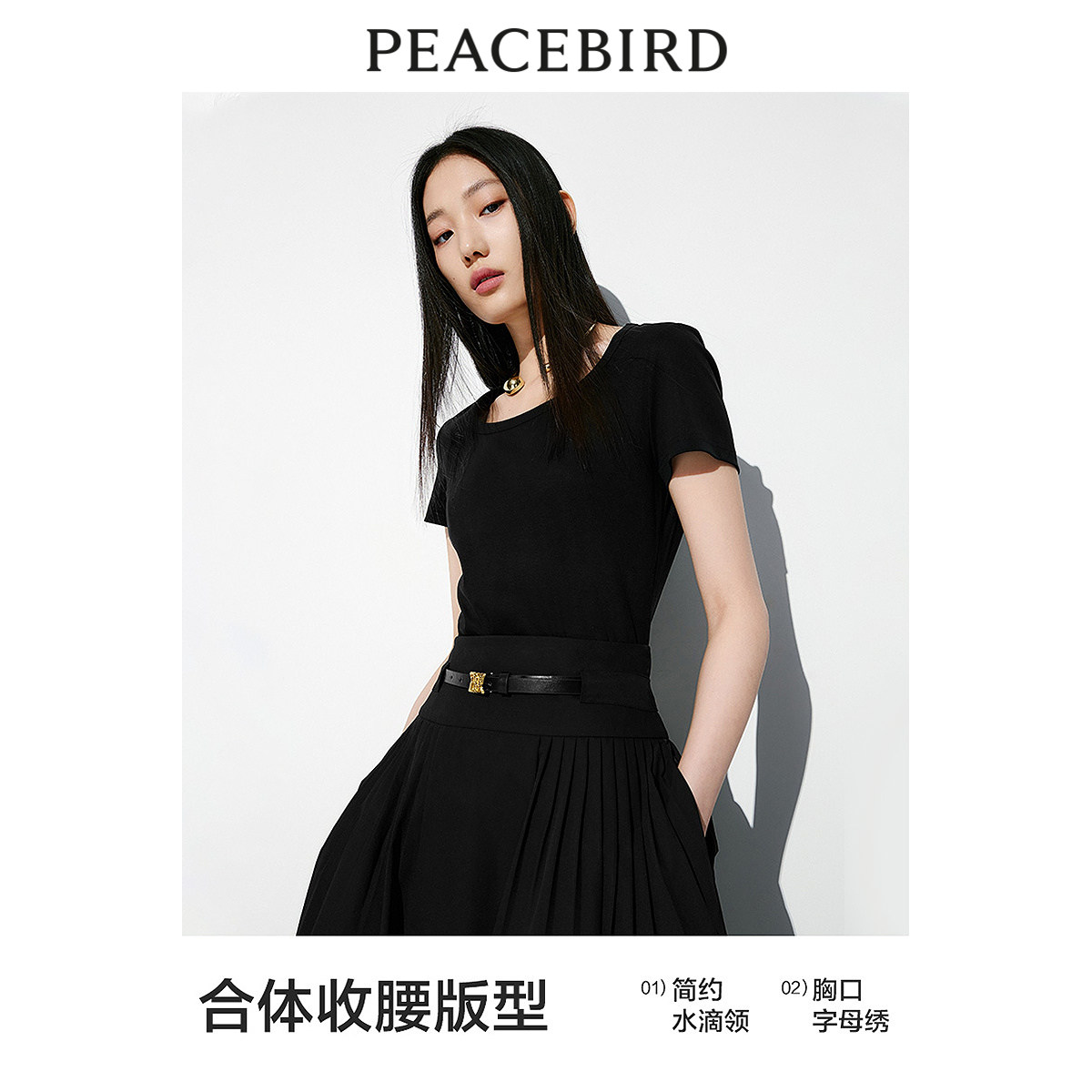 太平鸟经典纯色双面丝光T恤女短袖2025秋新款升级合体U领上衣舒爽