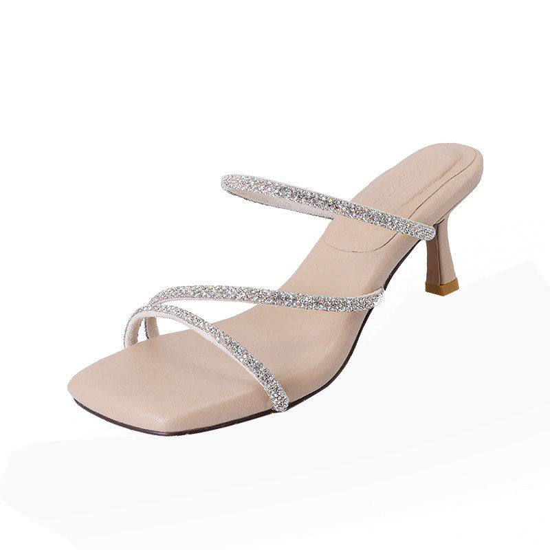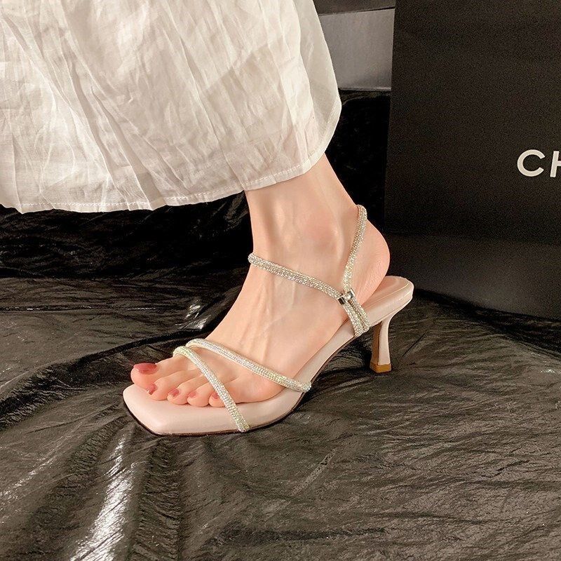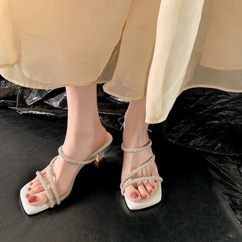 2026夏季新款仙女风水钻凉拖鞋女欧货外穿方头踩屎感高跟时尚凉鞋