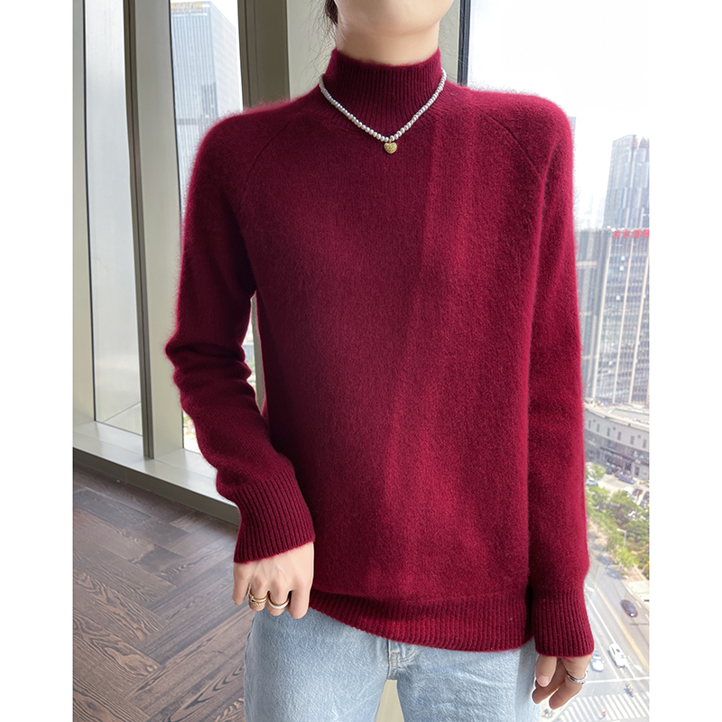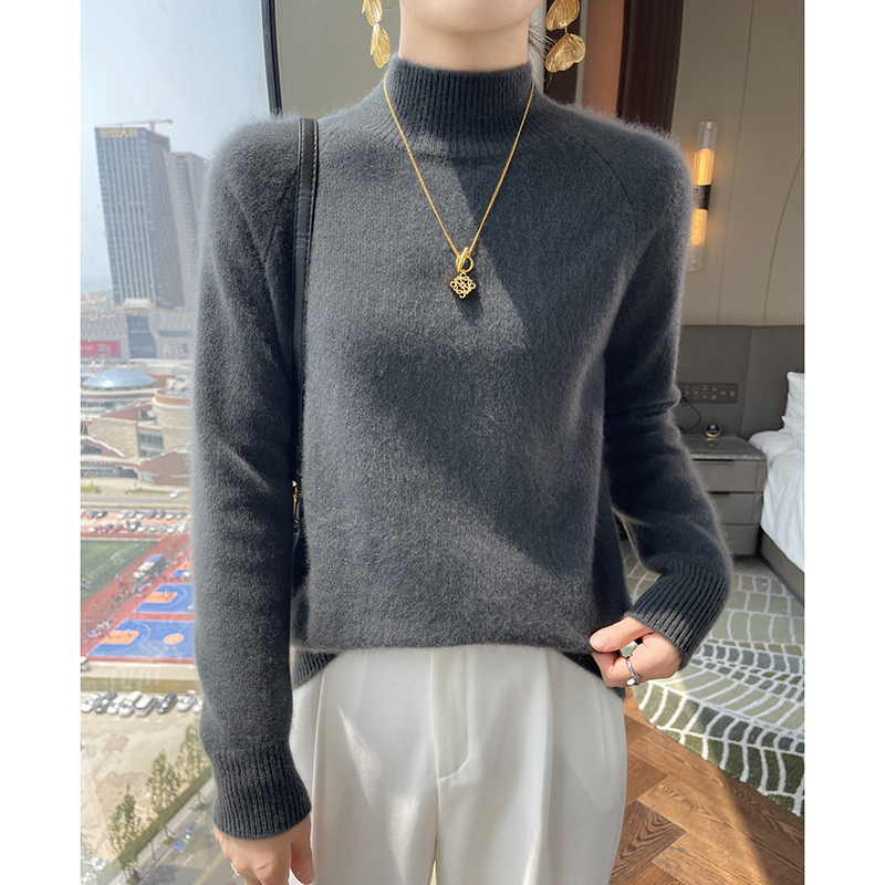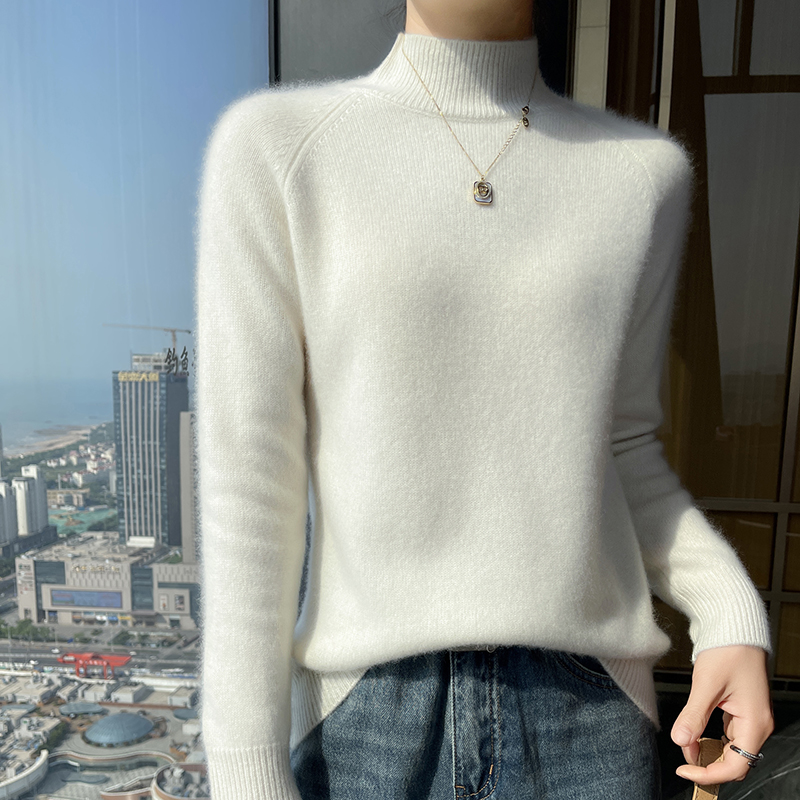 半高领羊绒衫女加厚宽松2024冬季亲肤山羊绒毛衣插肩袖打底衫内搭