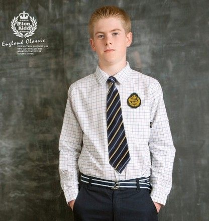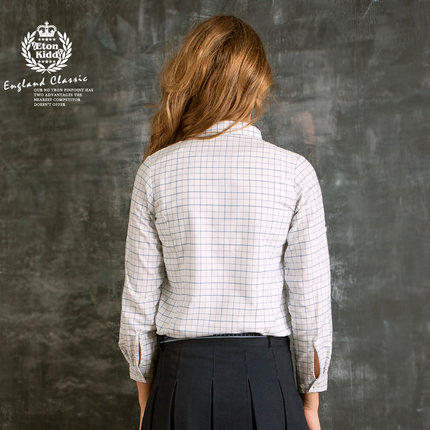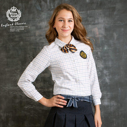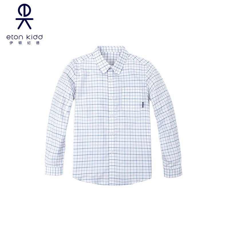 伊顿纪德校服衬衣学院中小学生衬衣男童长袖衬衫蓝白方格09C121