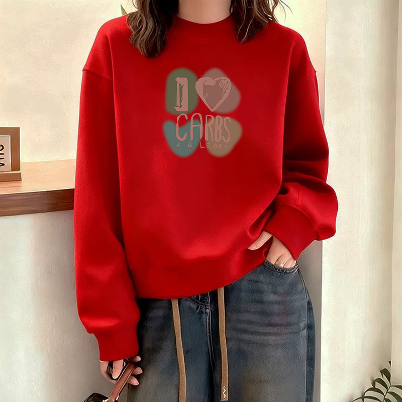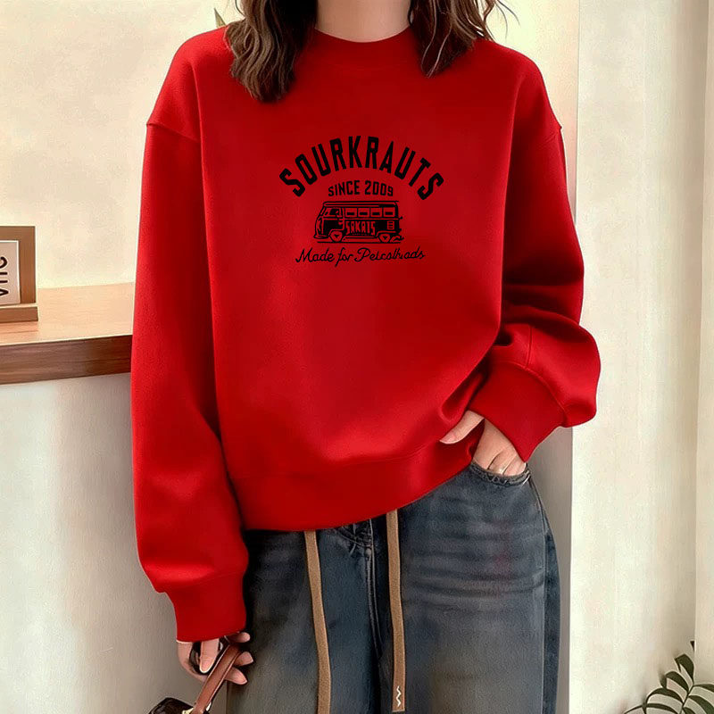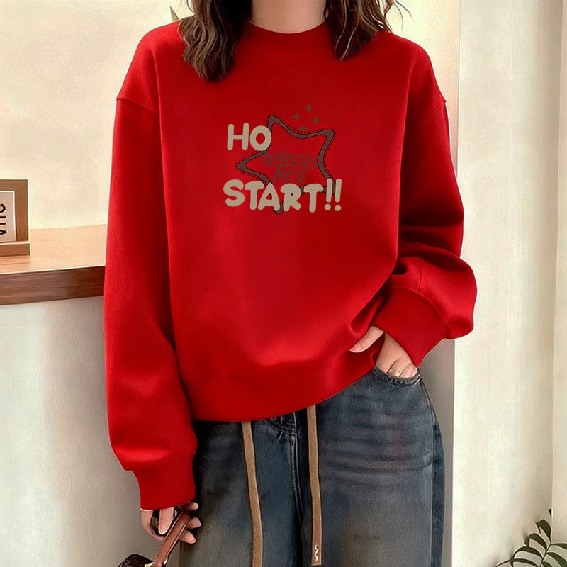 纯棉红色圆领卫衣女2026新款秋冬宽松马年本命年加绒加厚长袖上衣