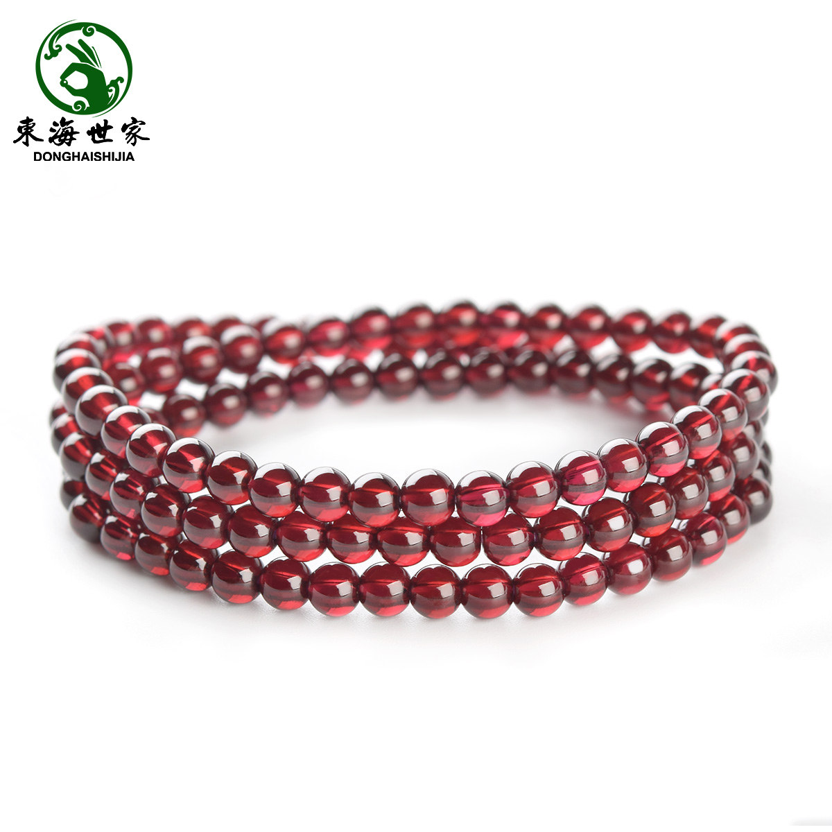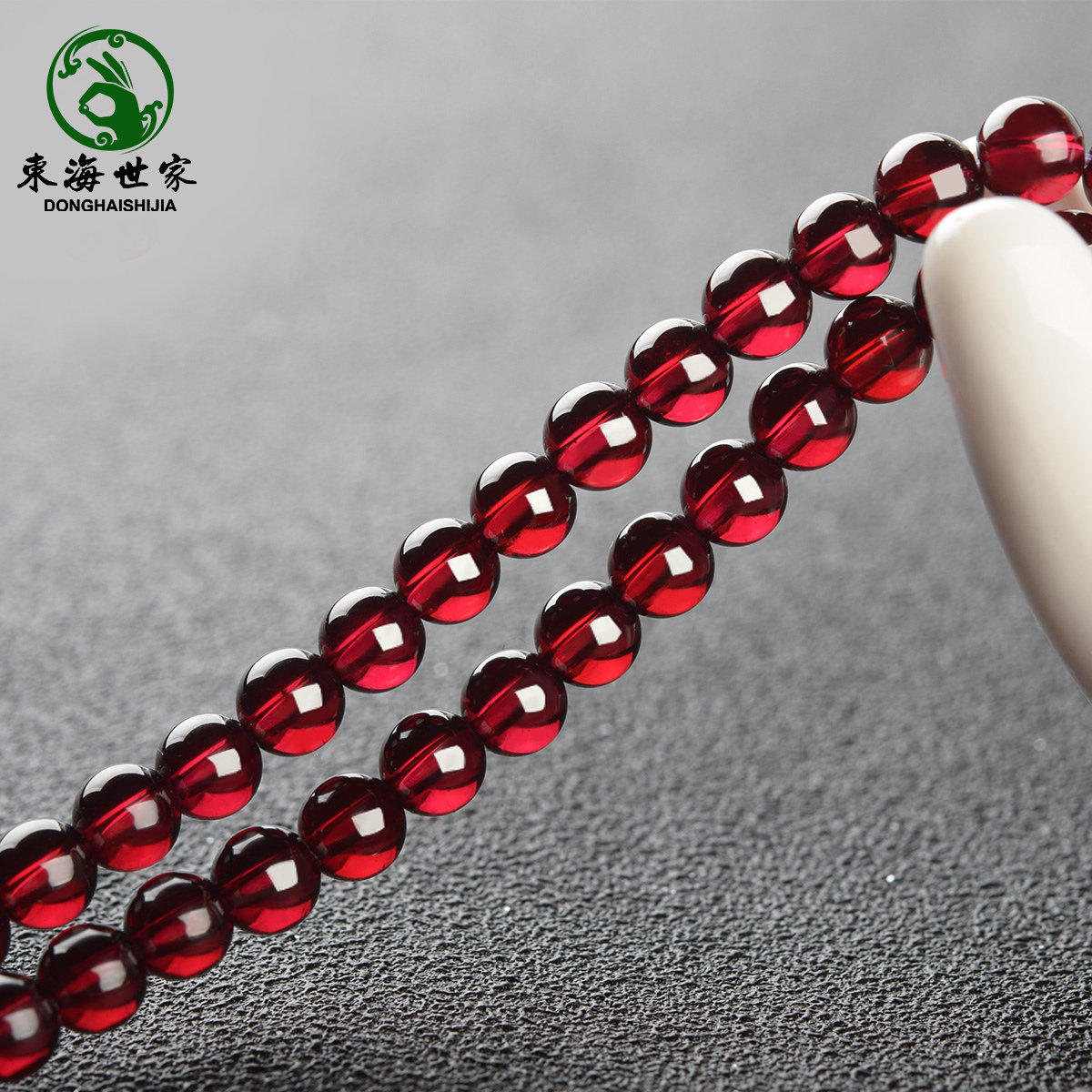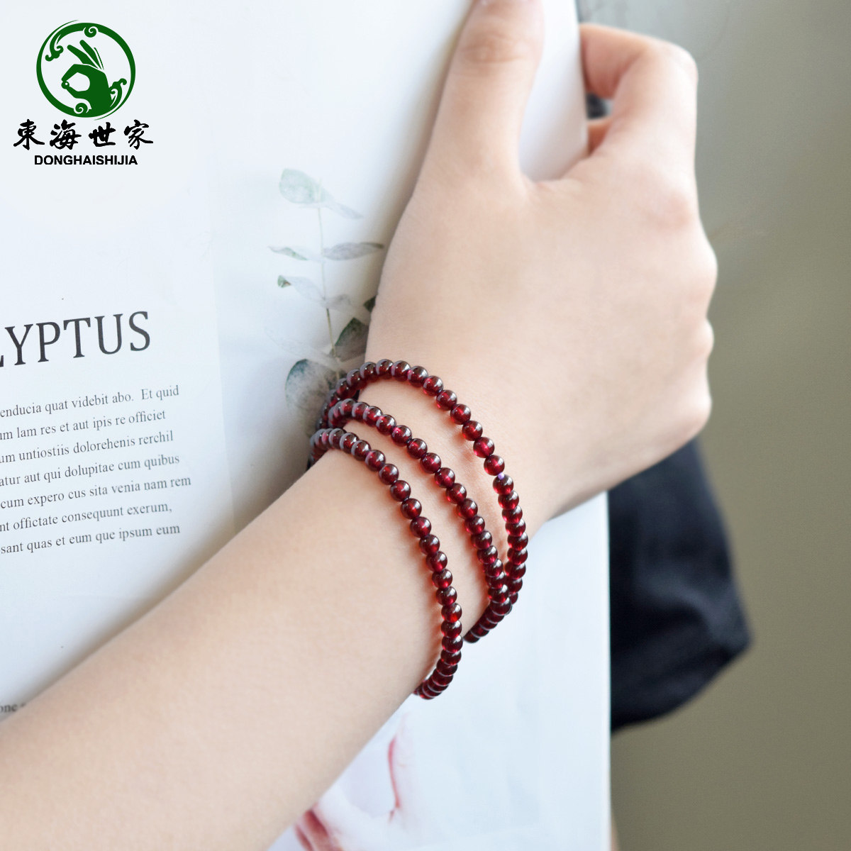 石榴石手串女东海水晶玛瑙玉石单圈三圈紫牙乌橙红散珠子酒红手链
