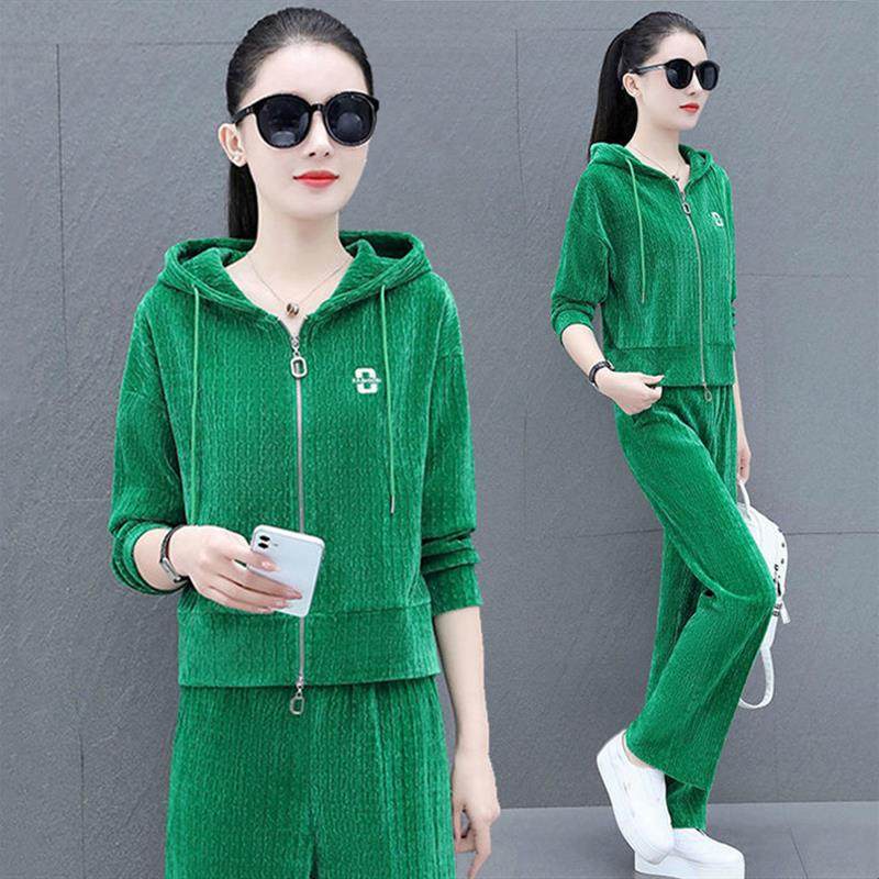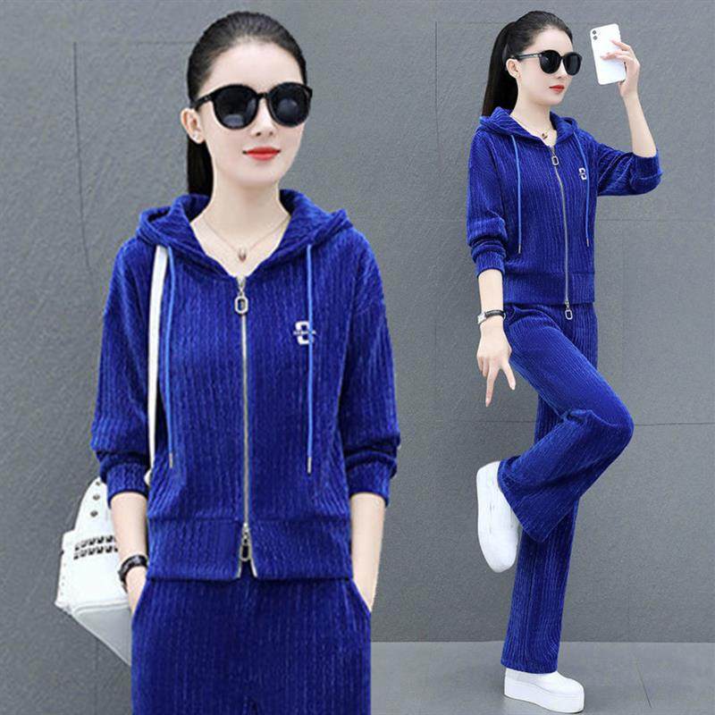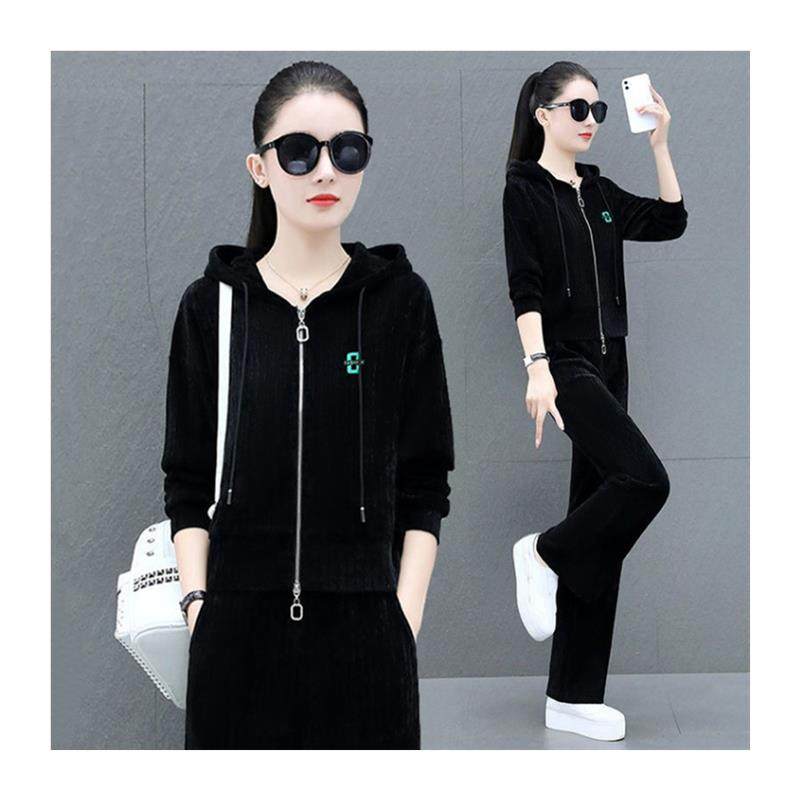 880#金丝绒休闲运动服套装女秋冬2025新时尚卫衣外套阔腿裤两件套