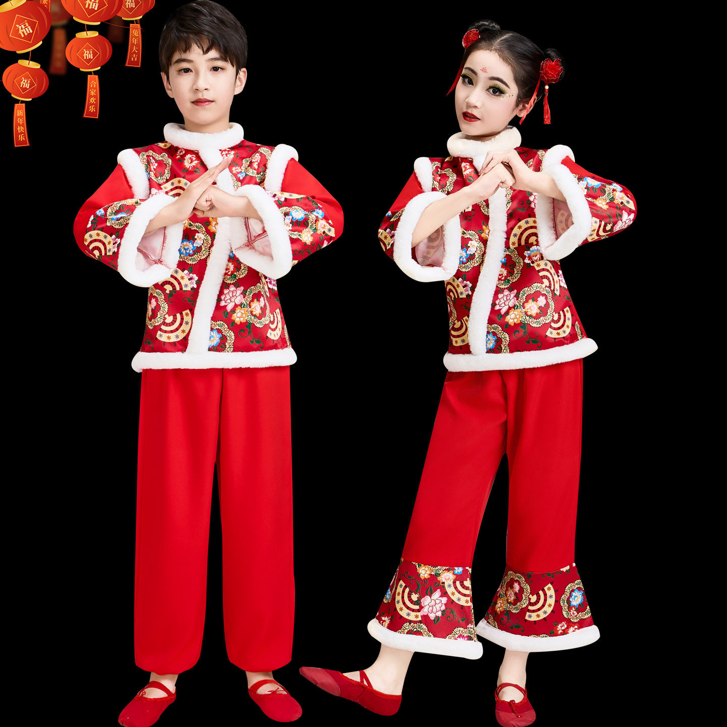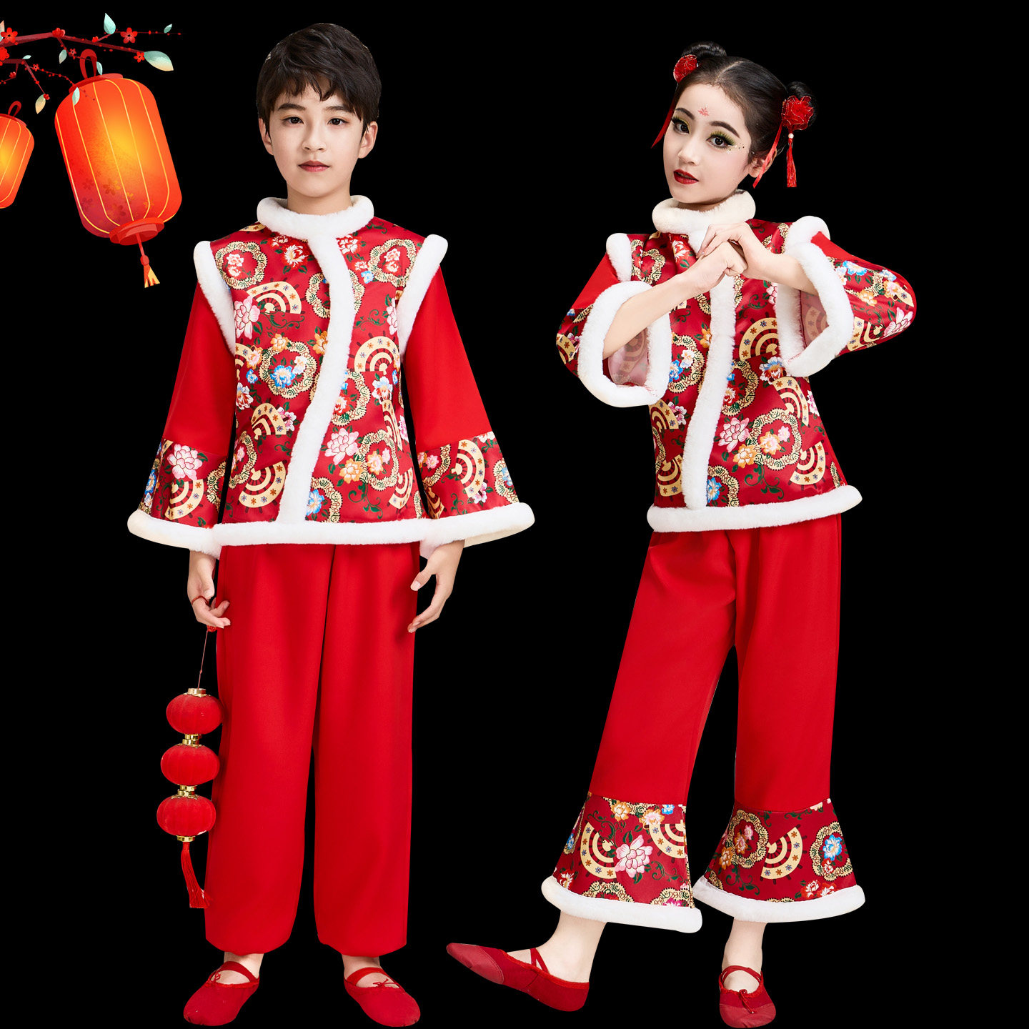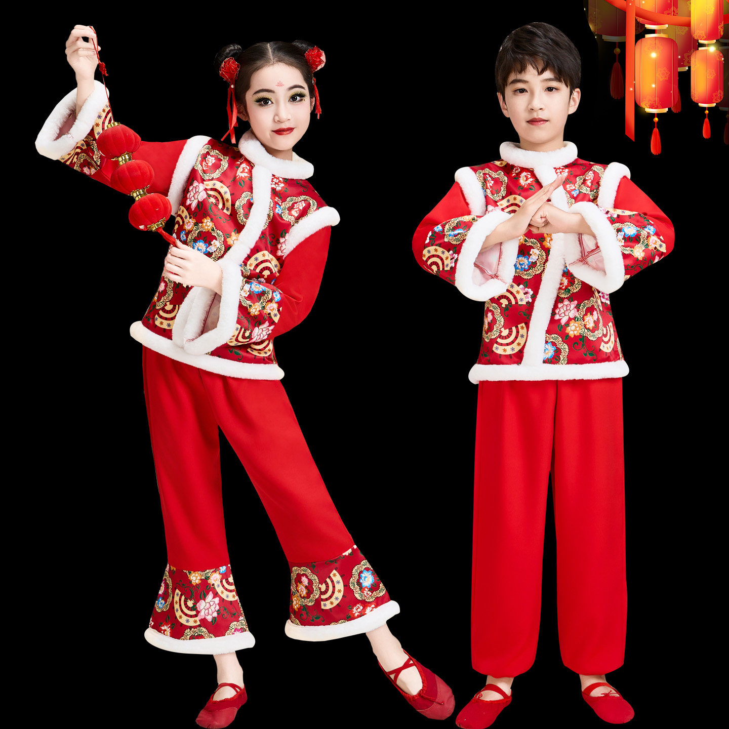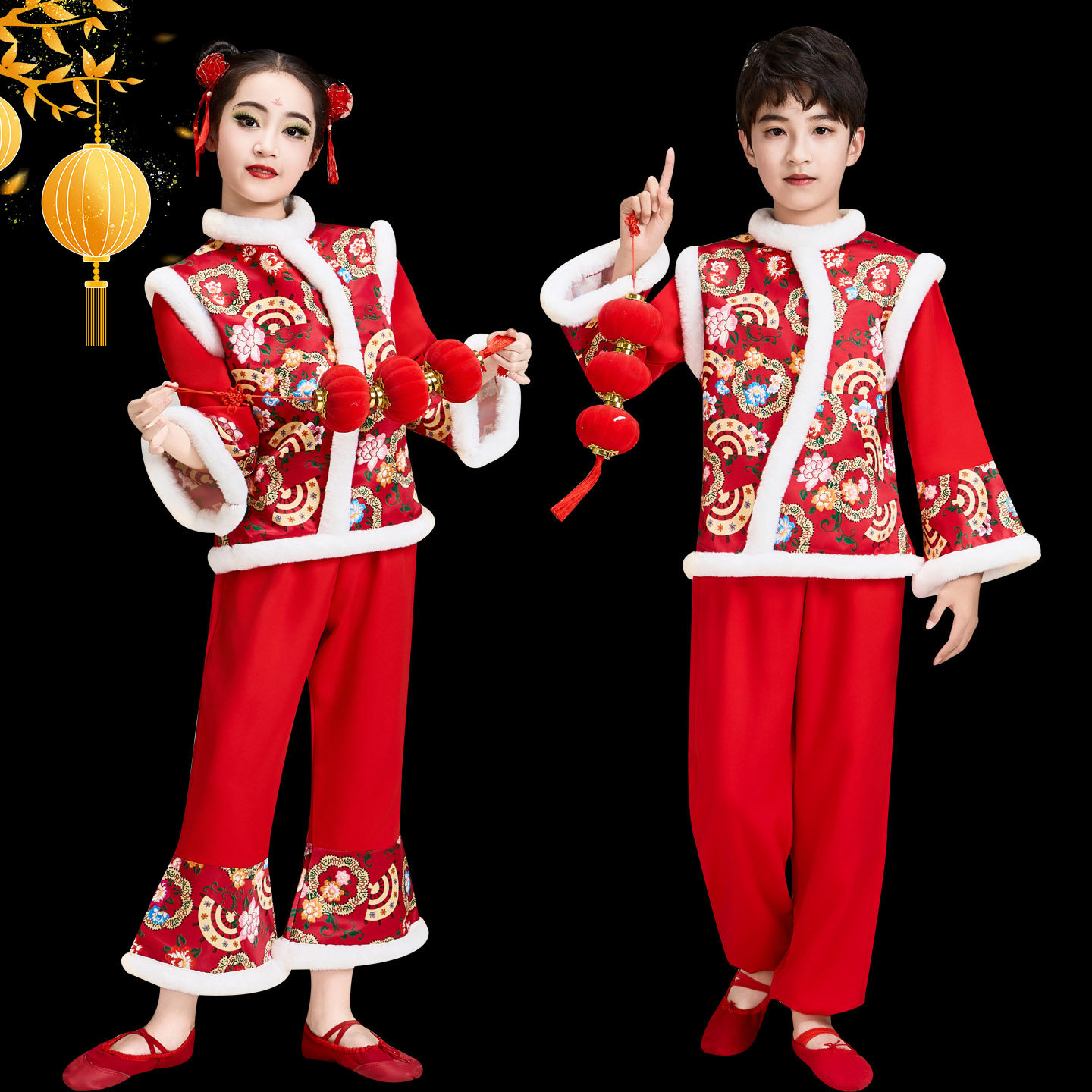 元旦儿童喜庆灯笼扇子秧歌演出服开门红幼儿园中国红腰鼓打鼓服装