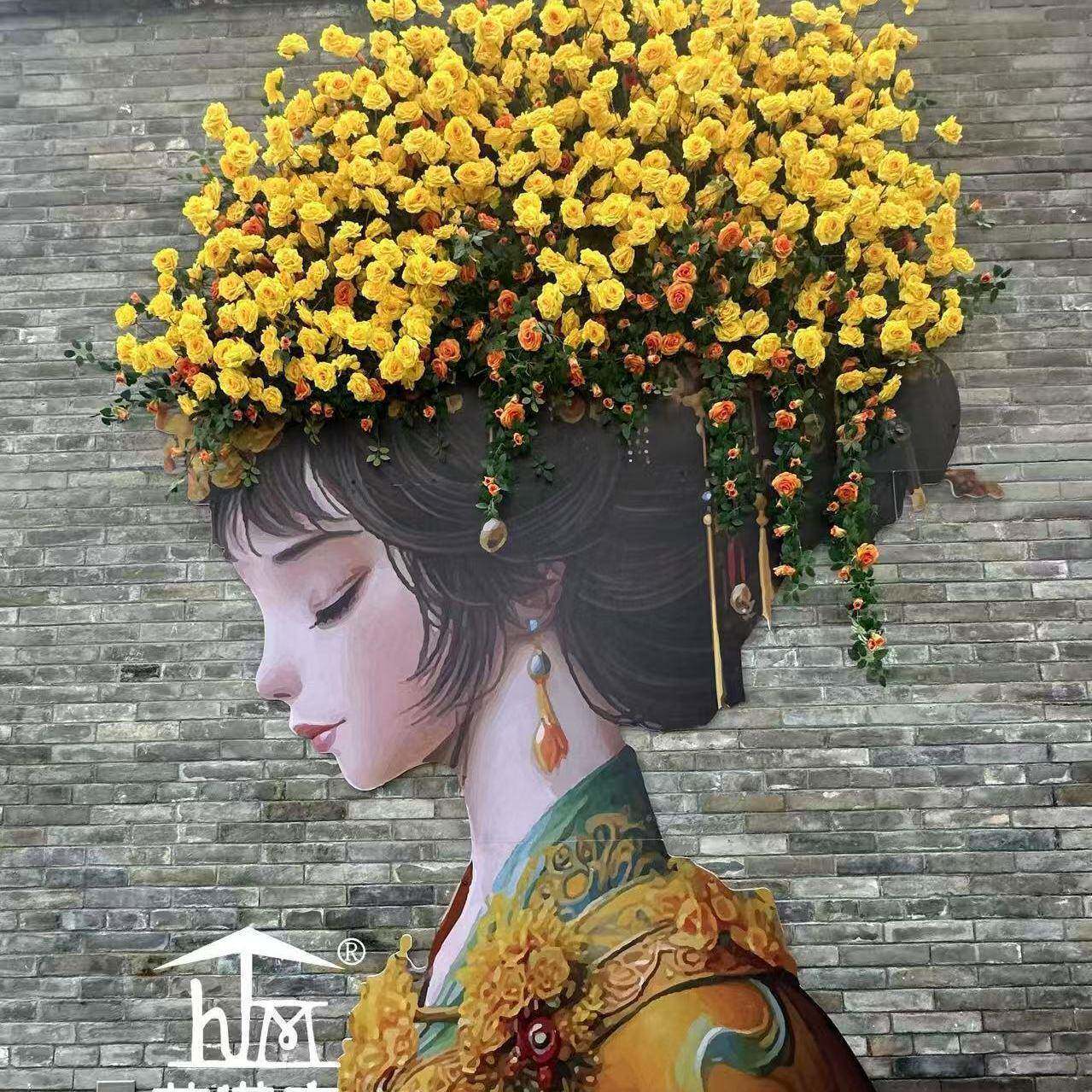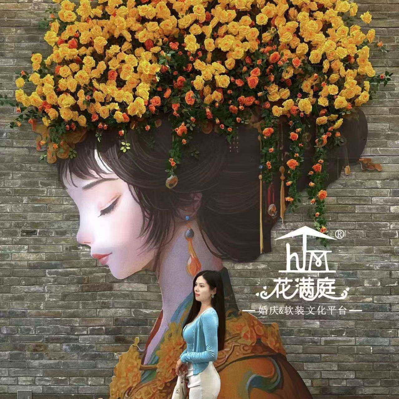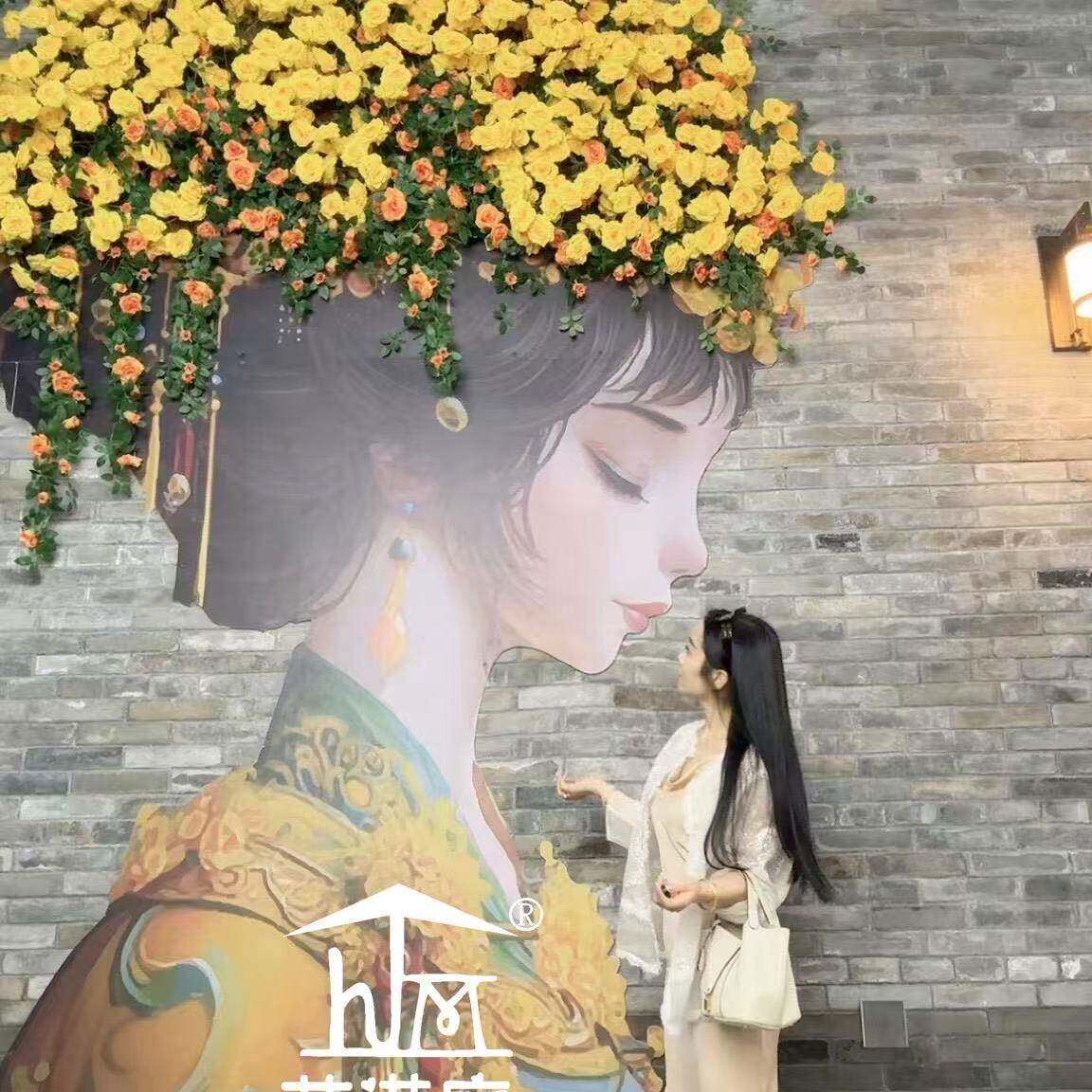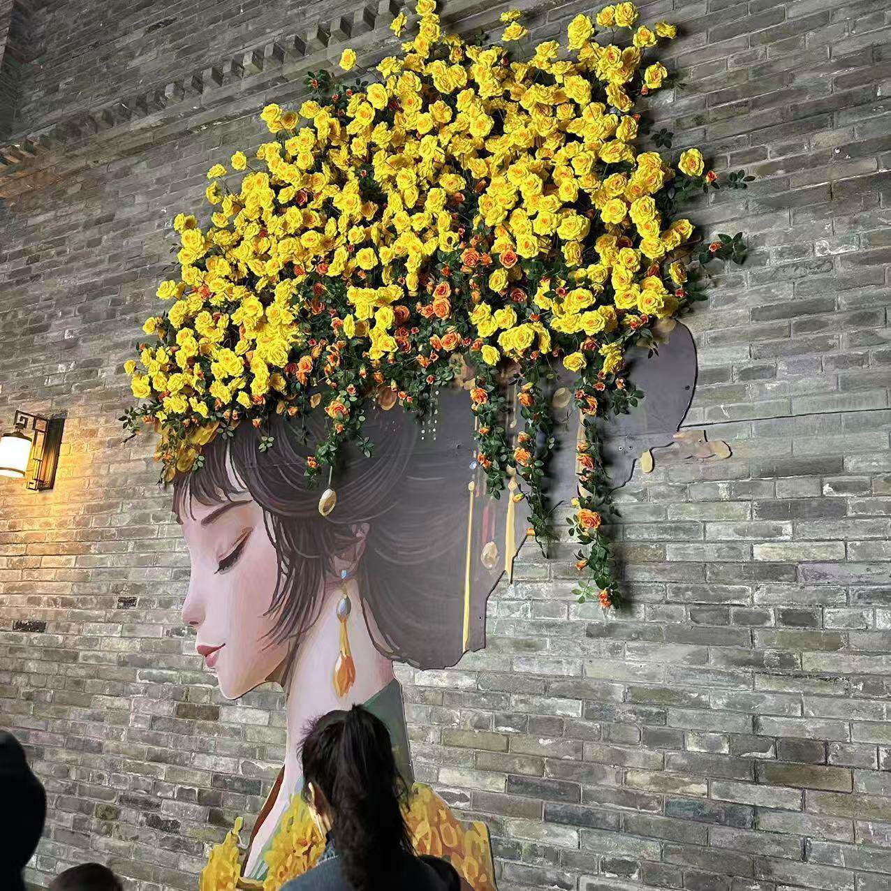 2026国风网红花墙女孩仿真鲜花玫瑰瀑布花墙文旅国粹拍照打卡背景