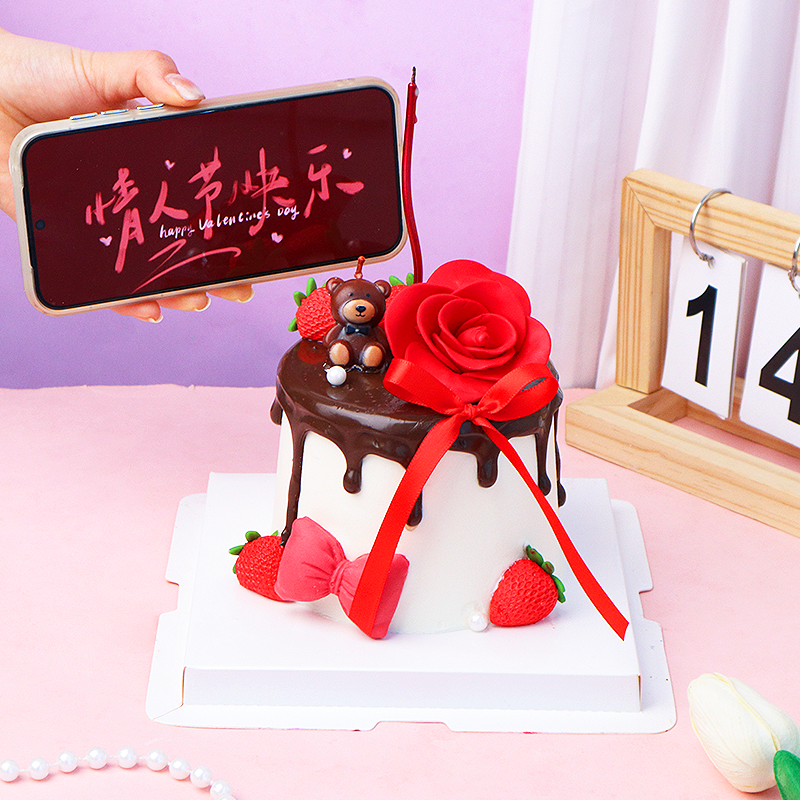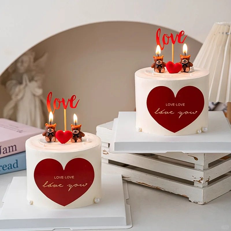 可爱卡通小熊蜡烛情人节蛋糕装饰