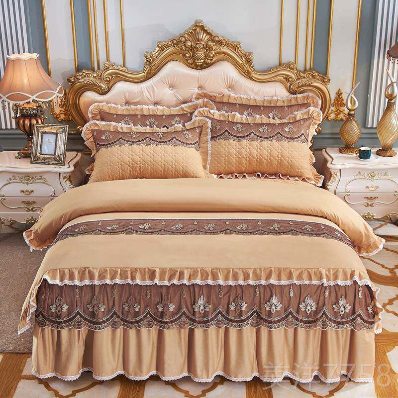 高档纯棉加厚被套四件套床丝裙款夹棉8公主.风蕾1双人2.0床罩床单