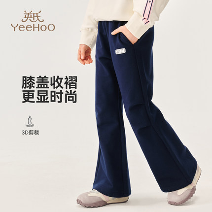 英氏女童裤子2025春秋新款儿童长腿微喇裤中大童休闲运动裤喇叭裤