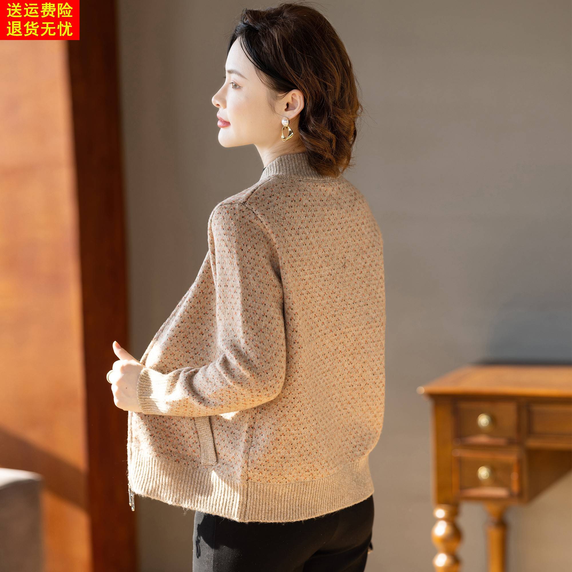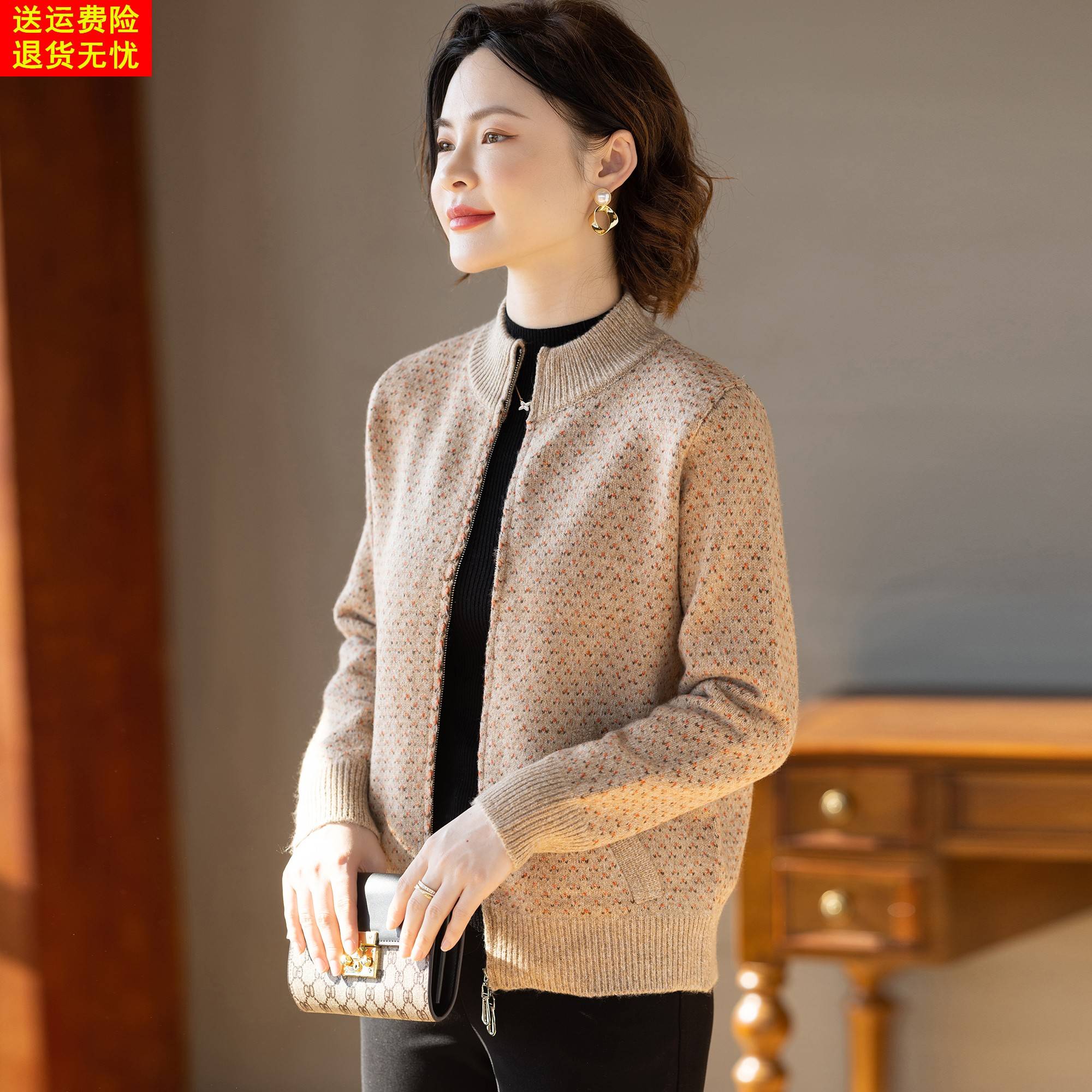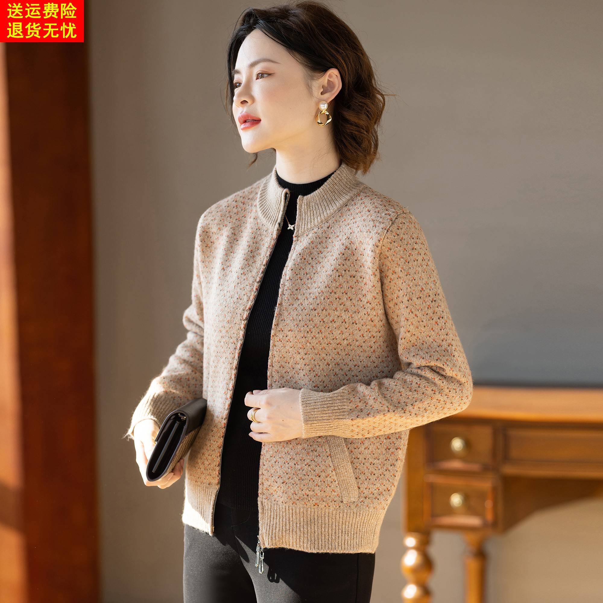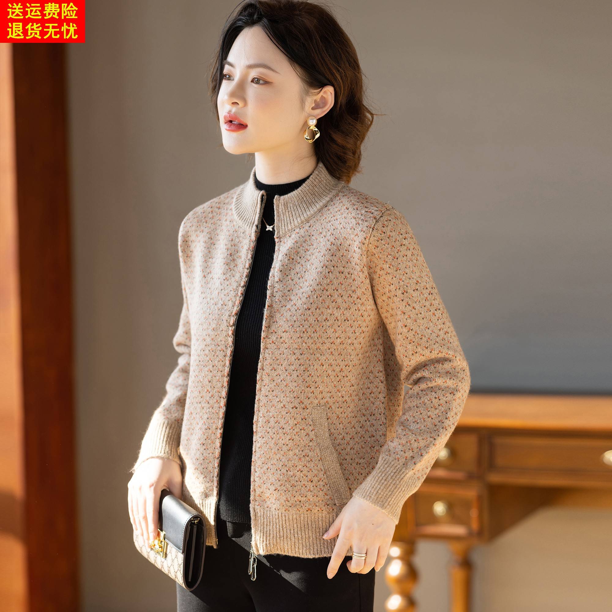 50多岁妈妈洋气外套针织夹克衫时尚秋装新款中老年妇女春秋上衣服
