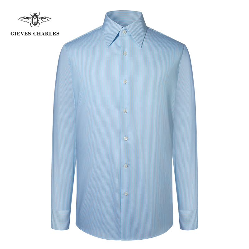 【140支】高支纯棉蓝色细条纹衬衫男高端商务绅士长袖衬衫春秋款