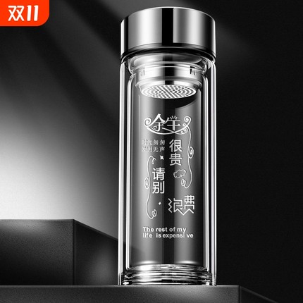双层大容量玻璃杯隔热水杯茶杯车载便携喝水男透明家用加厚1000ml