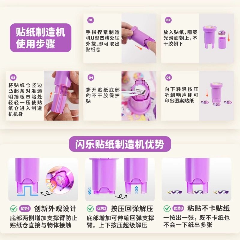 小马宝莉印章贴纸女孩儿童玩具魔法场景盖章盲盒卡通贴画书宝宝奖励画册闪乐补充装贴纸机玩乐本幼儿园解压
