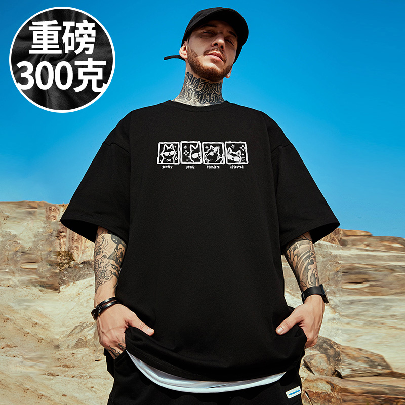 【100%纯棉】大码男装咖色短袖T恤美式潮牌加肥加大码胖子半袖夏