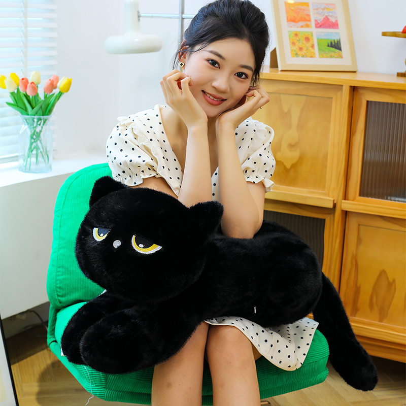 黑色猫咪玩偶睡觉抱枕女孩布娃娃毛绒玩具抱睡公仔大号生日礼物女
