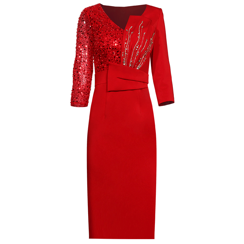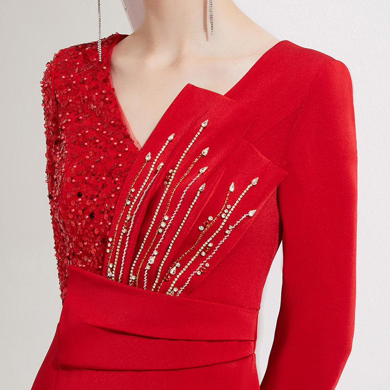 创意狐礼服高端轻奢喜婆婆婚宴礼服平时可穿晚宴会红色连衣裙女