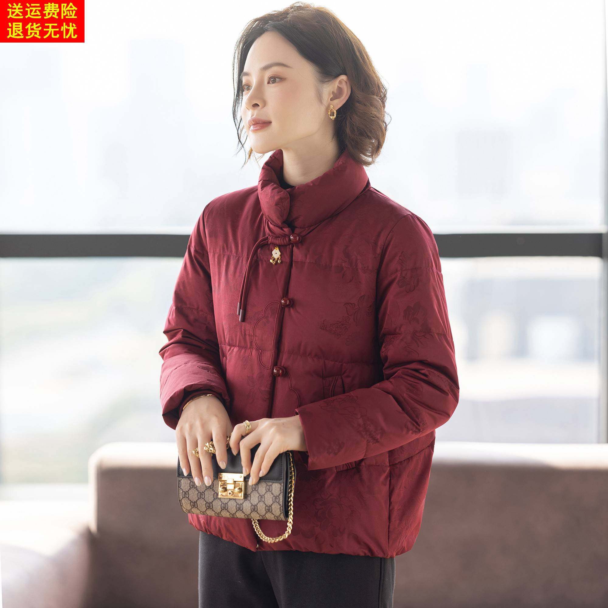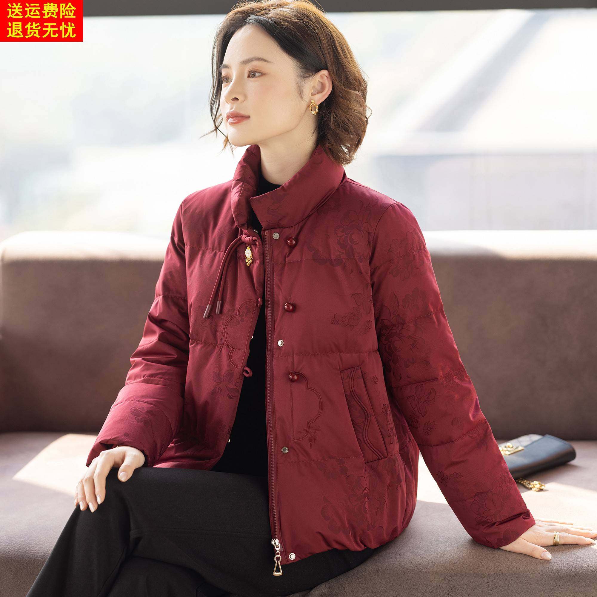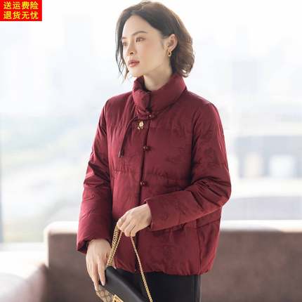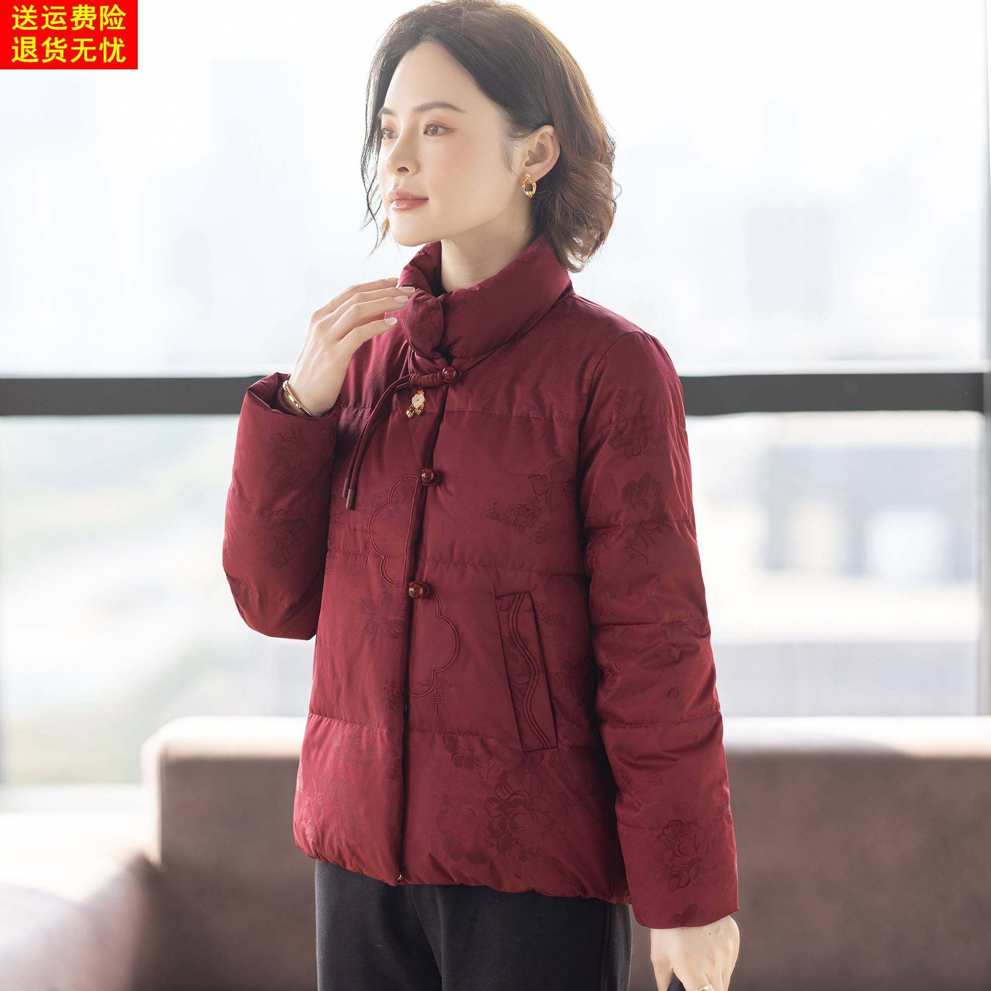 高级感妈妈羽绒服红色上衣服喜婆婆婚宴中老年人女士冬装外套新款