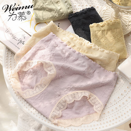 为慕莫代尔内裤女纯棉中高腰透气全棉底裆日系少女蕾丝边三角短裤