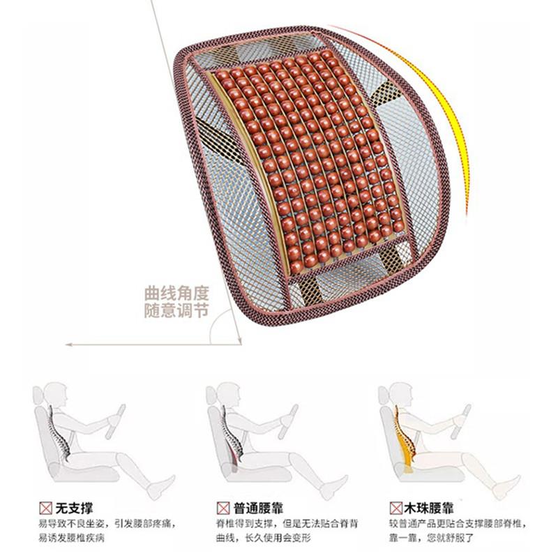 汽车腰靠垫护腰背靠枕夏季座椅靠腰部支撑木珠按摩靠背办公室透气