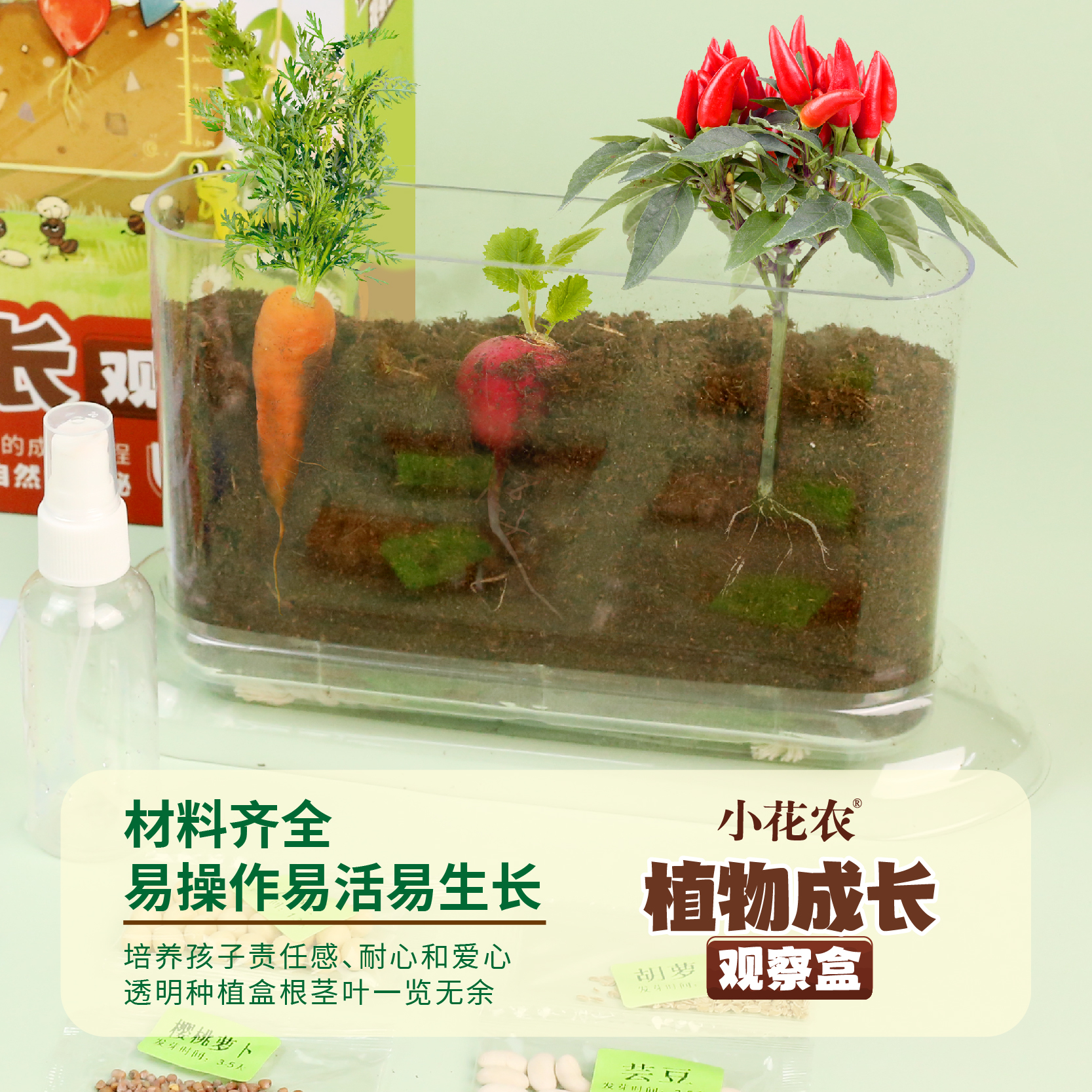 儿童种植小盆栽小农场发芽小植物小花农迷你小农场根系生长观察窗