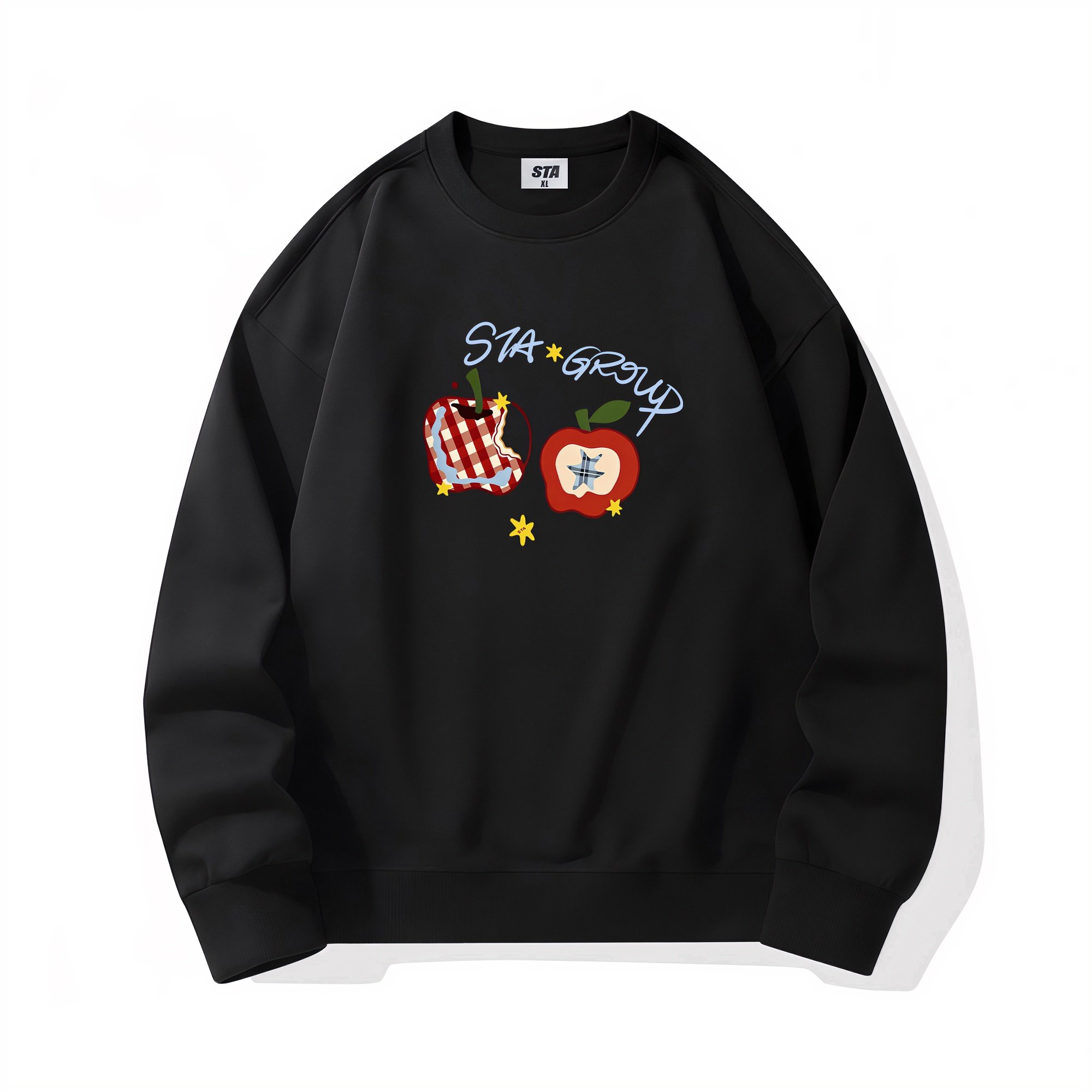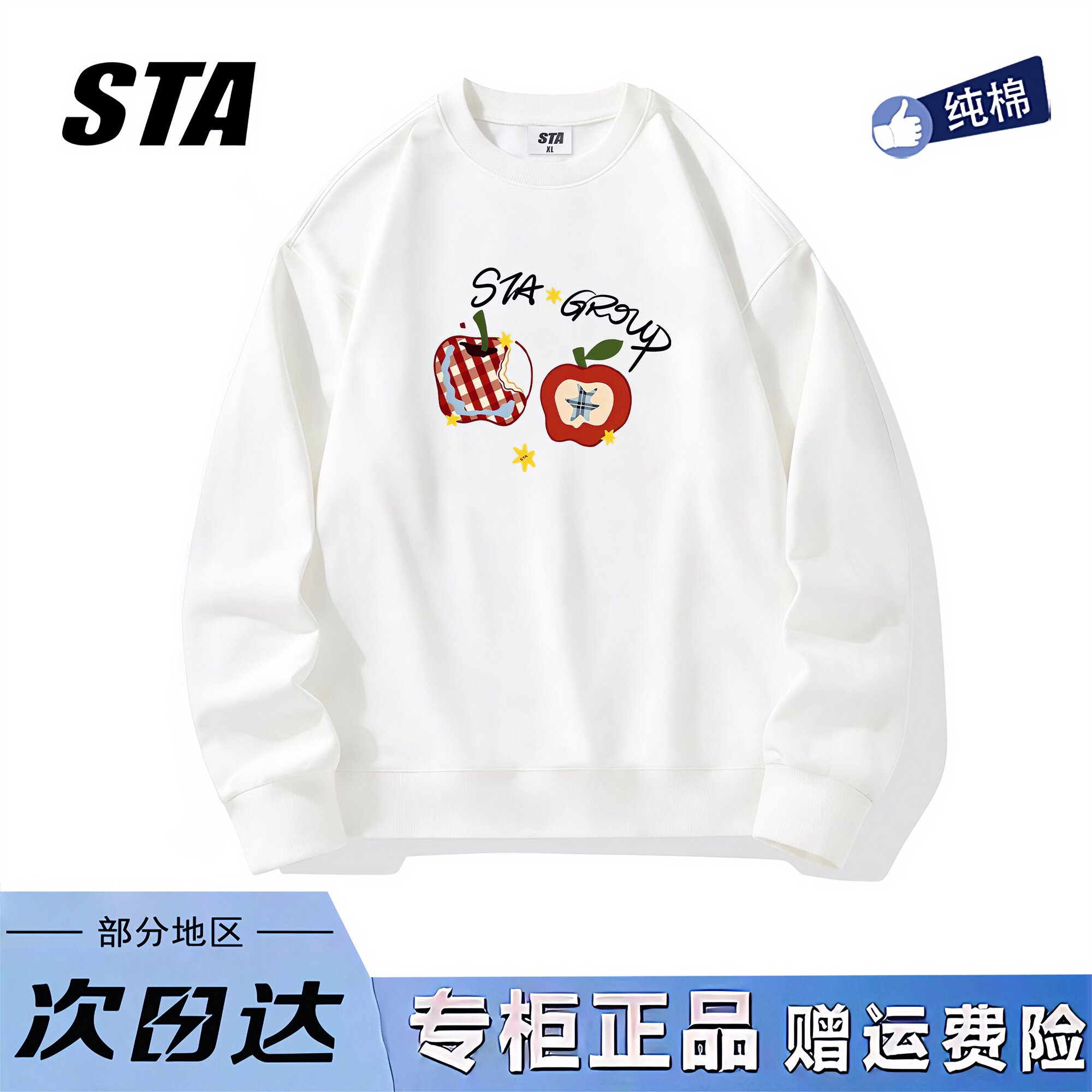 STA旗舰店美式潮牌重磅纯棉小众感设计圆领无帽卫衣男女加绒长袖