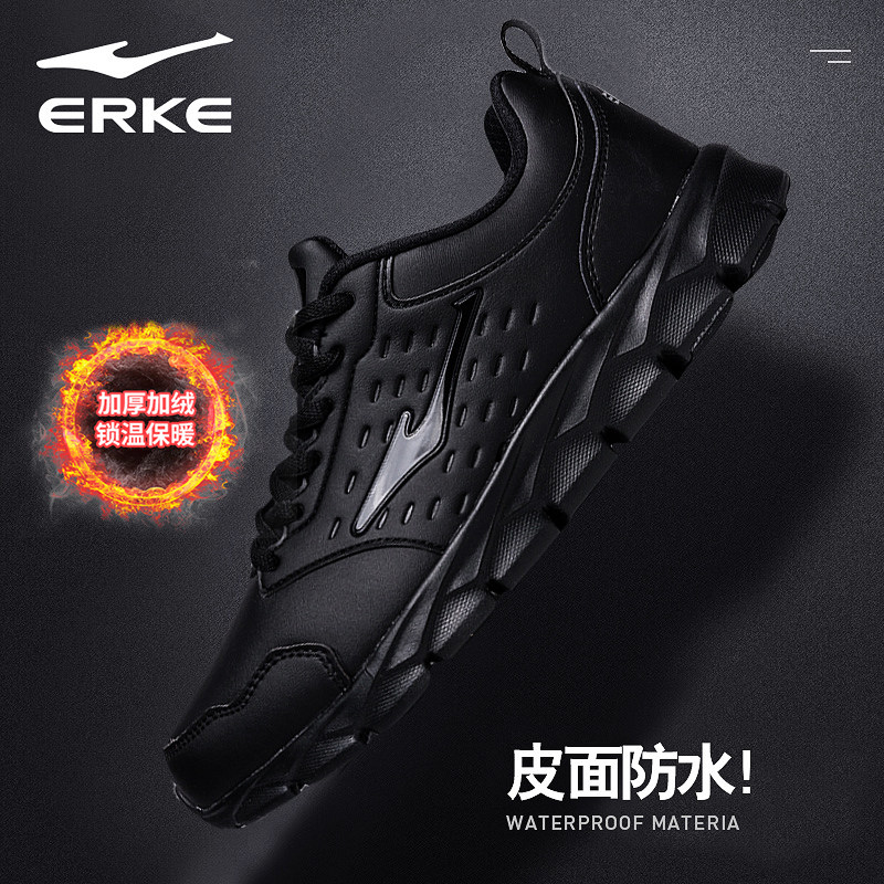 鸿星尔克男鞋2025秋冬新款皮面运动鞋男款黑色跑步鞋加绒保暖棉鞋