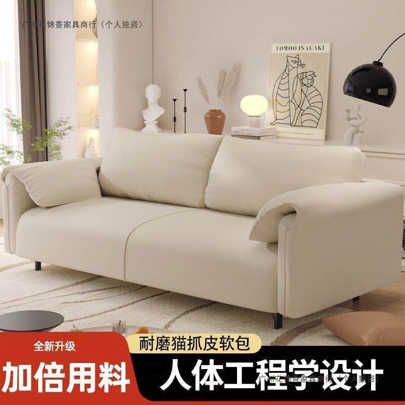 小沙发客厅2025新款现代简约奶油风小户型直排双人皮艺沙发出租房