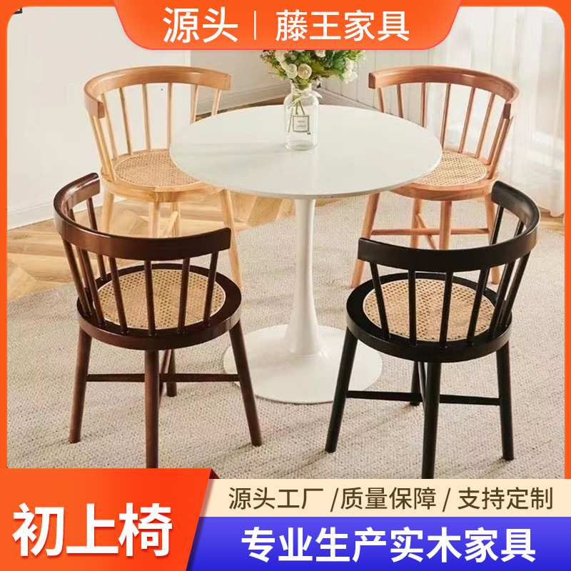 北欧实木椅子家用现代简约休闲茶桌温莎围椅复古藤编靠背太阳椅子