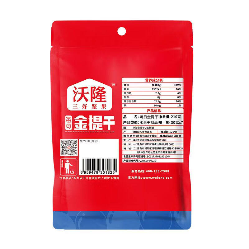 沃隆每日金提干210g袋装独立小包提子干办公休闲零食果脯小吃包邮